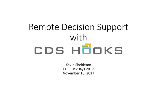 CDS Hooks is a new emerging standard that leverages both FHIR and SMART to provide open and interoperable decision support in the EHR. Using CDS Hooks, you can provide guidance to the clinician such as a better medication to order, critical information about the patient, or push a SMART app that should be run. This presentation will provide you with an overview of CDS Hooks, how it aligns with existing HL7 efforts and standards, and what the future holds.
