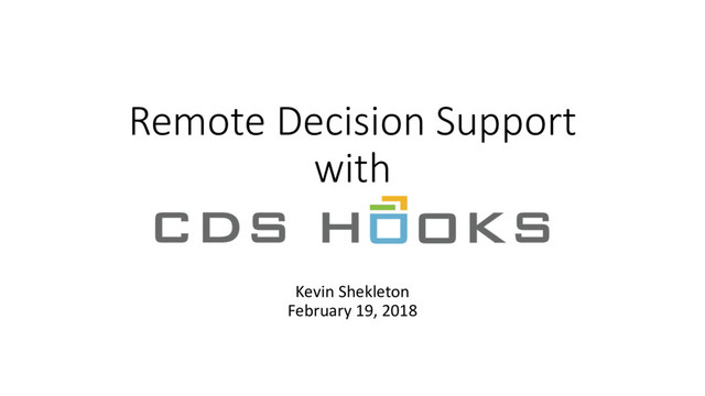 ℞ EHR triggers a CDS hook and invokes a remote service 1 2 CDS Service executes its own rules, leveraging FHIR data as needed EHR FHIR Server 3 Returns CDS cards (rendered and displayed by EHR) $200 per month (patient pays $30) Try HCTZ as first-line Switch to HCTZ Managing hypertension? Launch JNC 8 Rx Pro information card suggestion card smart app link card