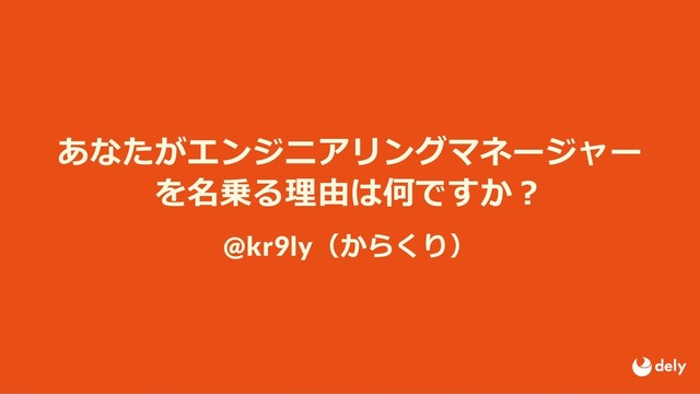 あなたがエンジニアリングマネージャー を名乗る理由は何ですか︖ @kr9ly(からくり)