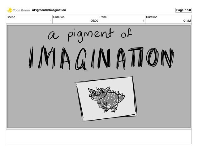 Scene 1 Duration 06:00 Panel 1 Duration 01:12 APigmentOfImagination Page
