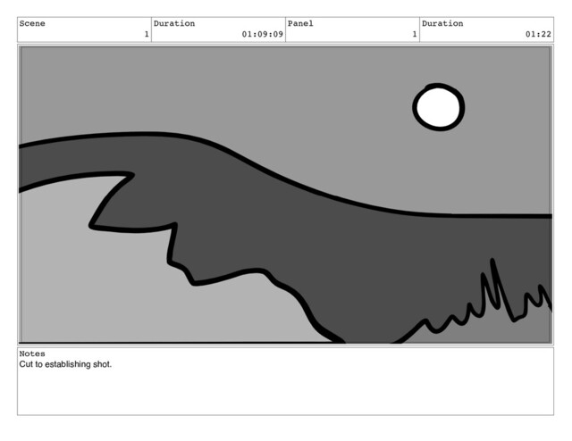 Scene 1 Duration 01:09:09 Panel 1 Duration 01:22 Notes Cut