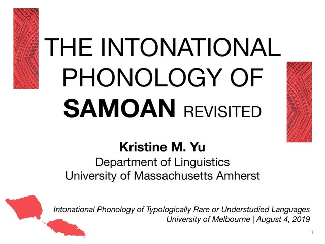 of Linguistics University of Massachusetts Amherst Intonational Phonology of Typologically Rare or Understudied Languages University of Melbourne | August 4, 2019 1