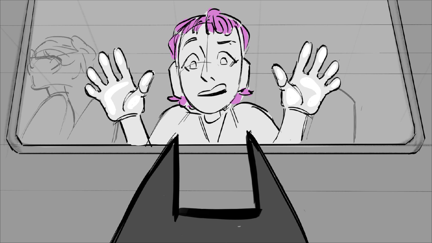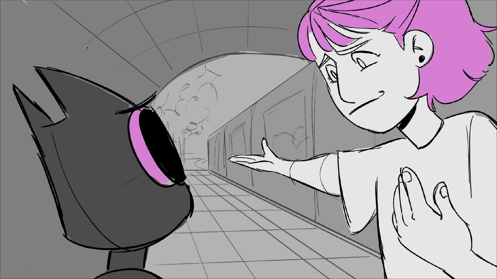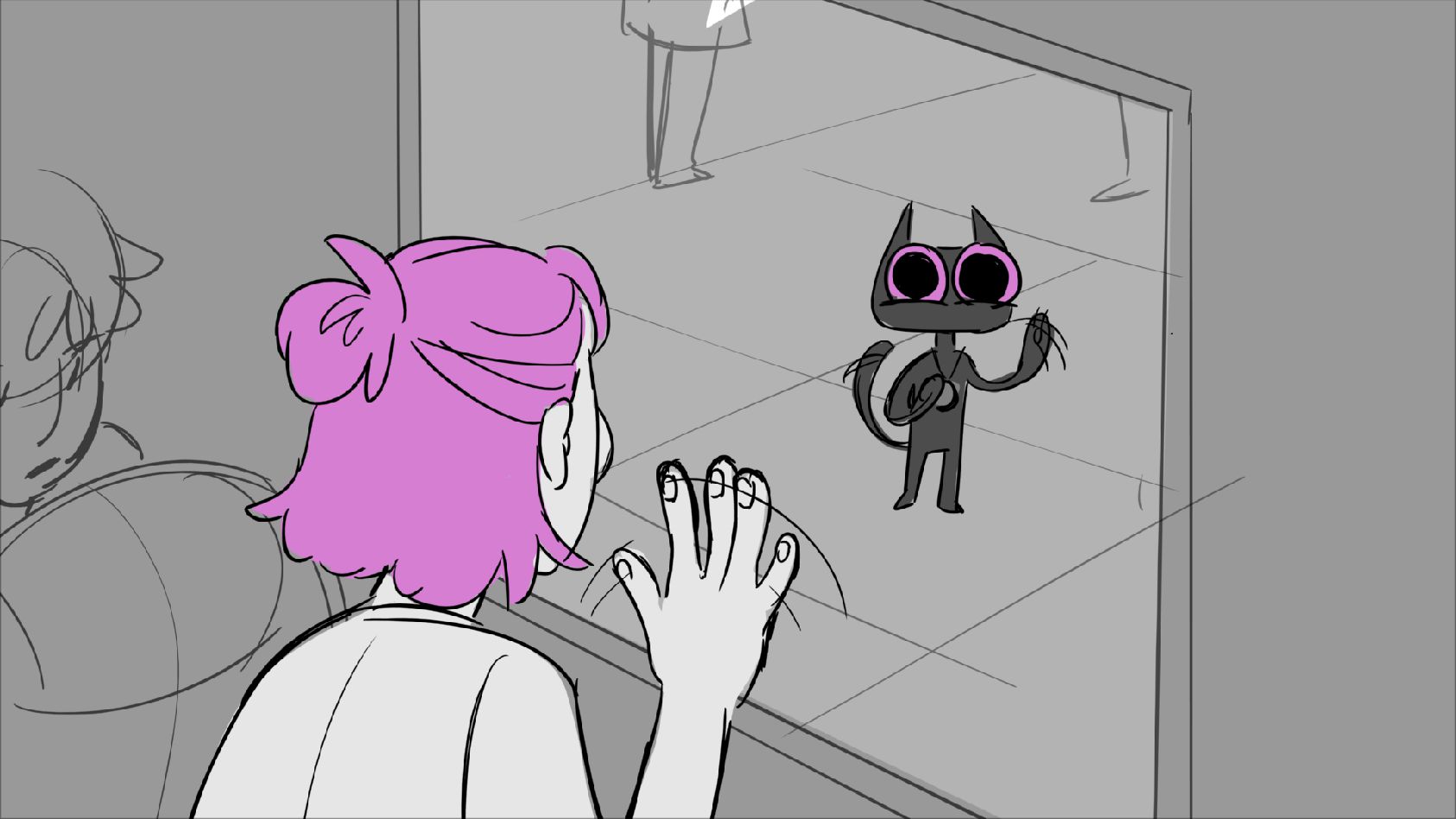 A cat tries to stop his owner from leaving. She promises she'll be back and leaves him with a gift until then.