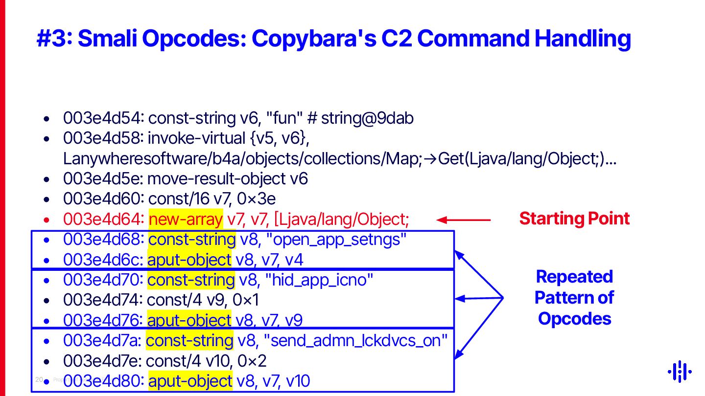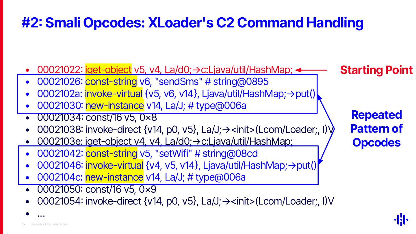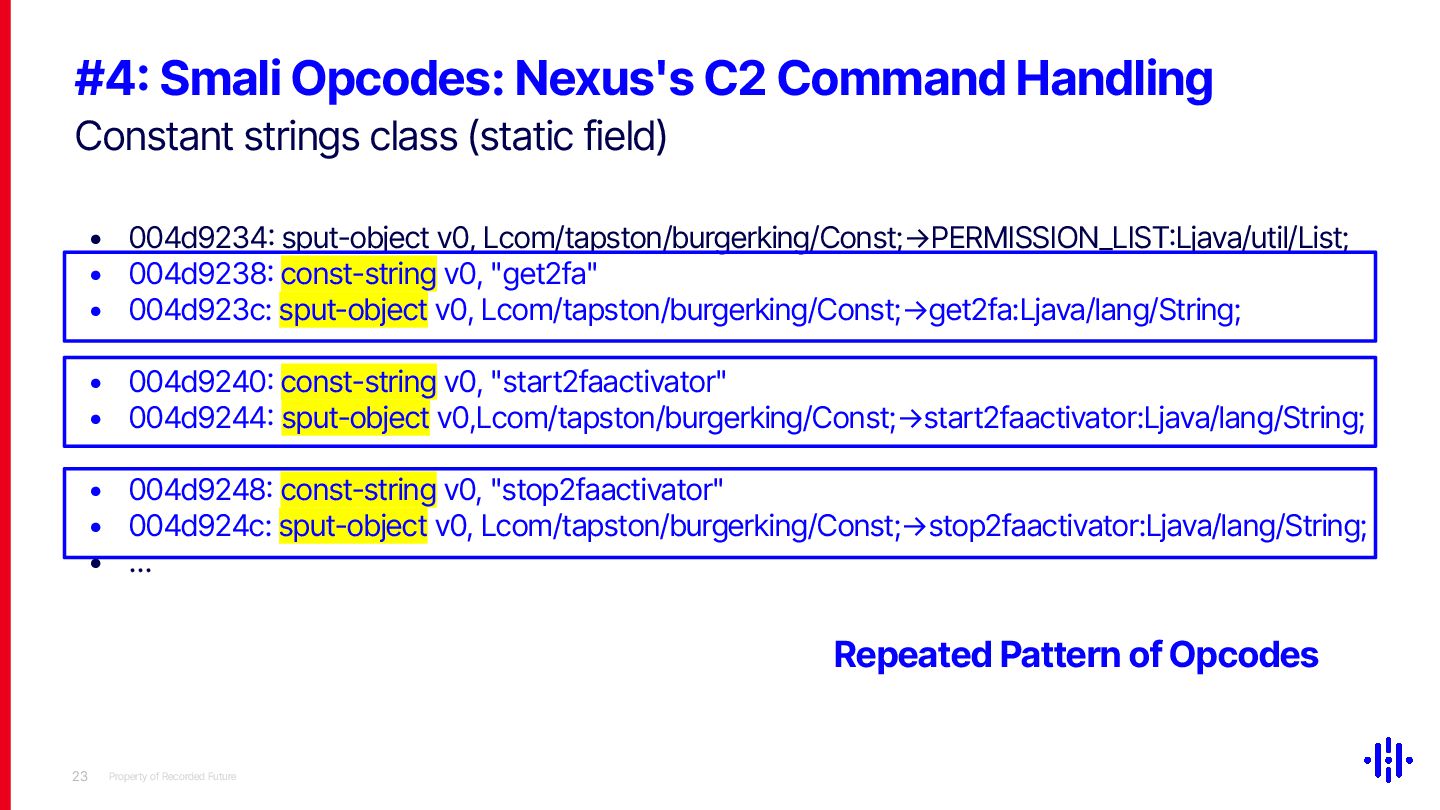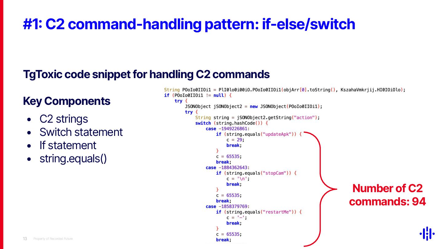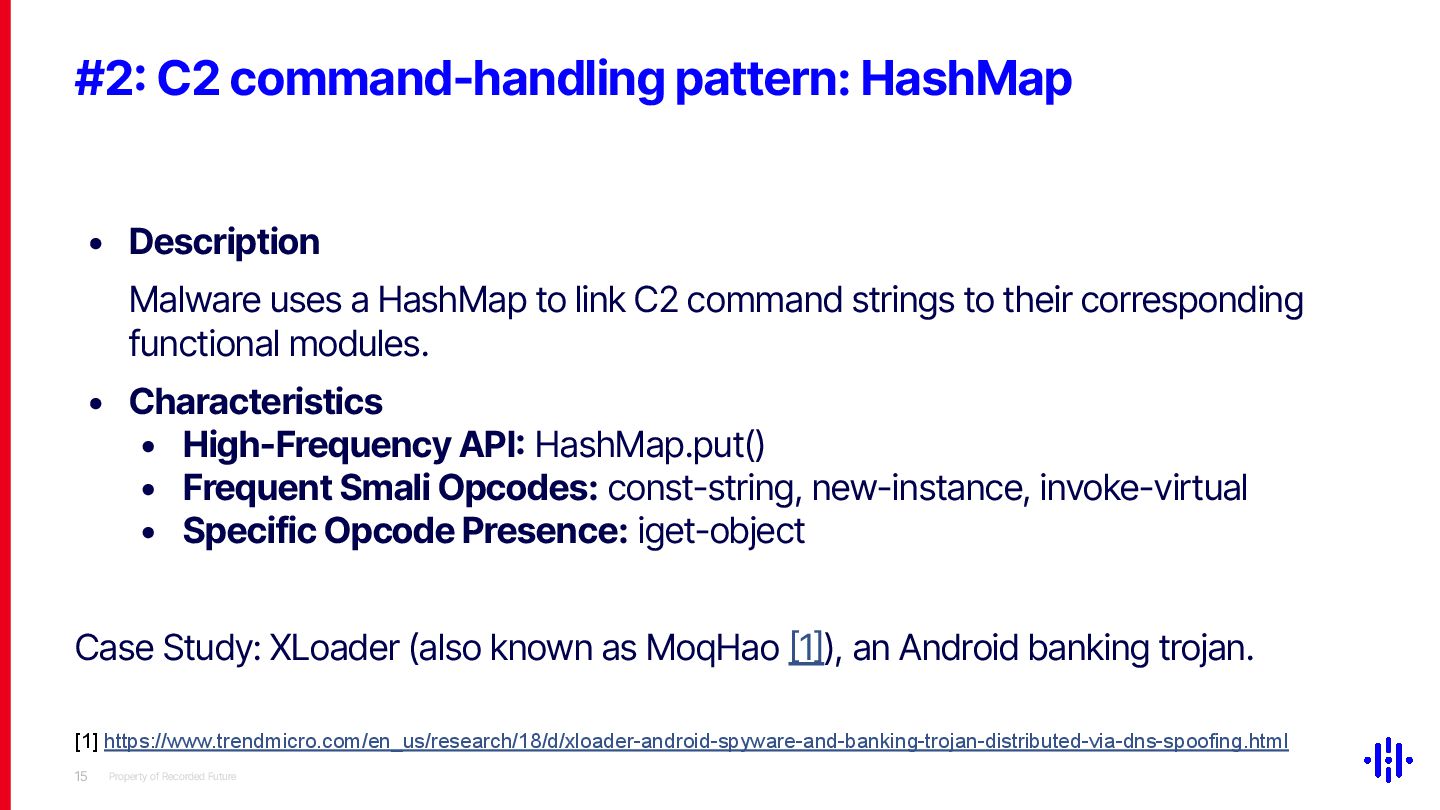 Our approach detects structured patterns in malware code, particularly multiple string comparisons within if-else and switch statements, and HashMap-based C2 command mappings that associate command strings with specific functions. Even when C2 commands are encrypted or obfuscated, these structures remain identifiable through Smali opcode analysis. By analysing the frequency and distribution of specific opcode patterns (e.g. const-string, invoke-virtual, if-eqz) and Android API calls (e.g. equals, contains), we establish detection thresholds to identify suspicious functions. This method lets analysts quickly pinpoint areas of interest, reducing the time spent on manual code inspection and improving overall analysis efficiency.