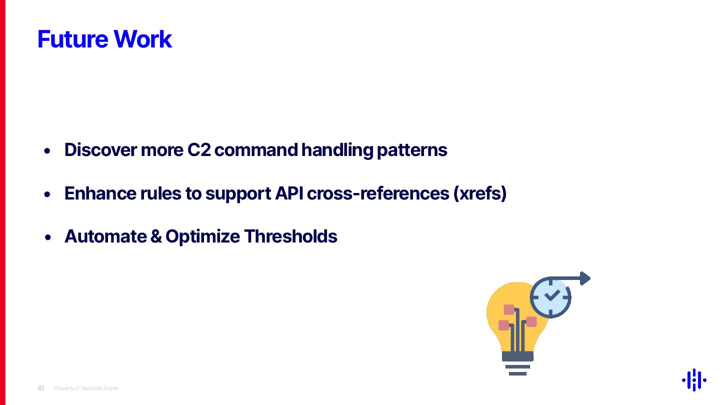Looking ahead, we will refine these thresholds and enhance our automated analysis to extend our methodology across diverse malware families. It will strengthen our ability to hunt for previously unknown malware with C2 command structures.