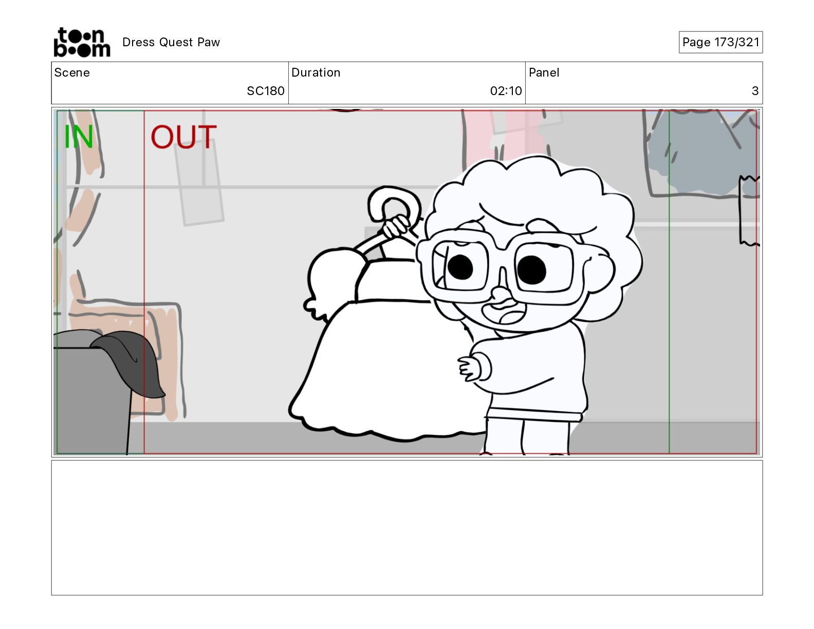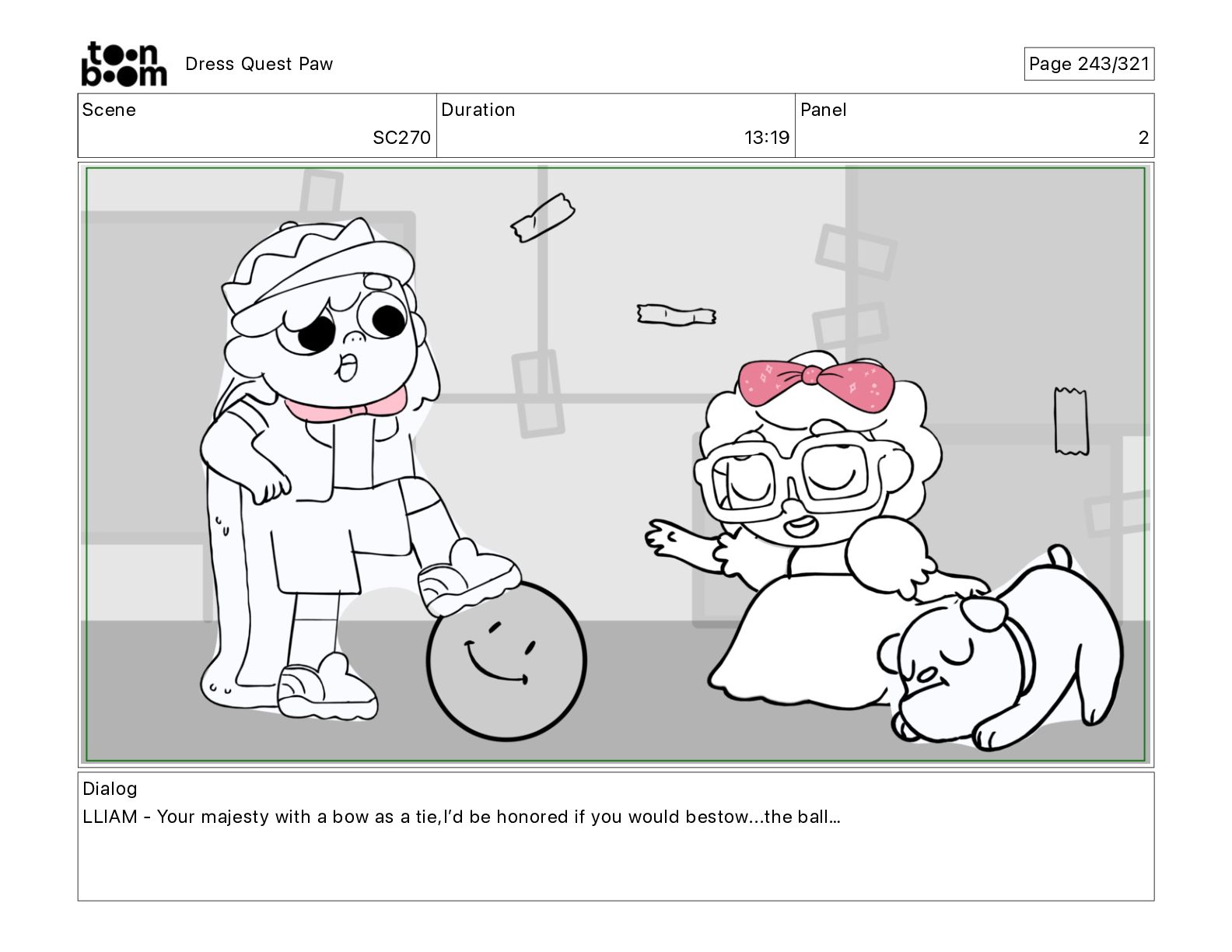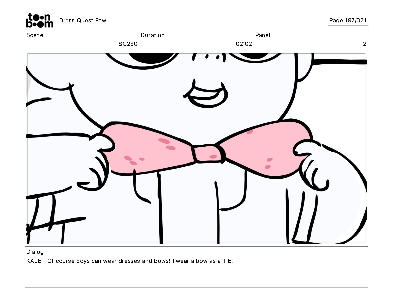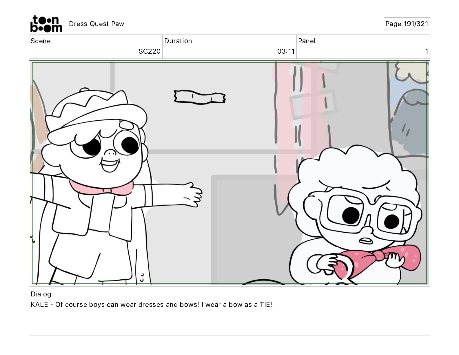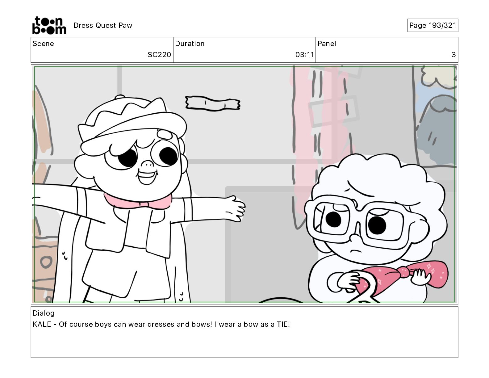 Scene SC320 Duration 01 14 Panel 2 Dress Quest Paw