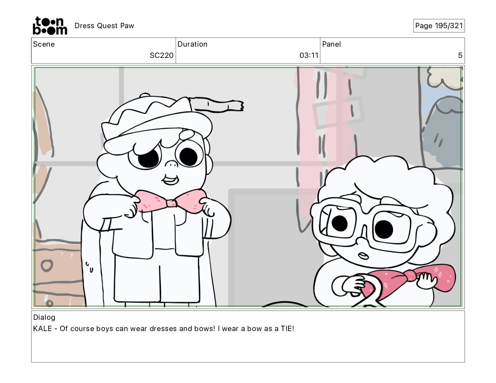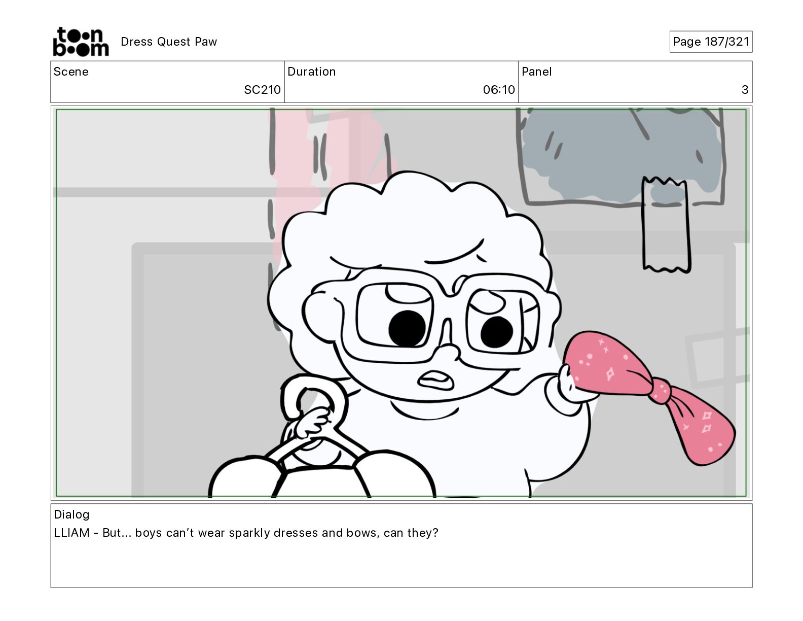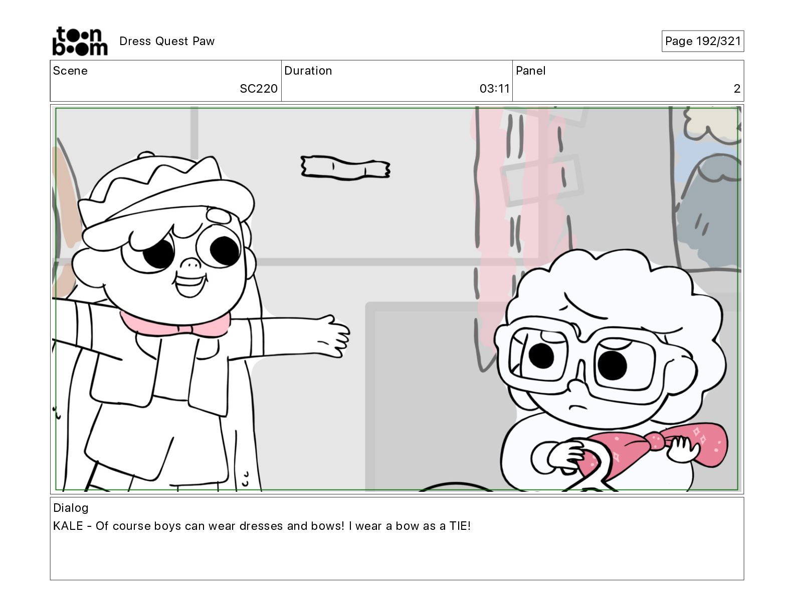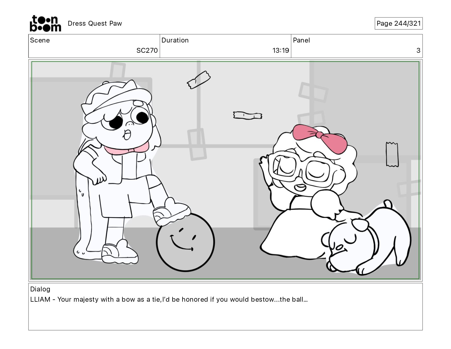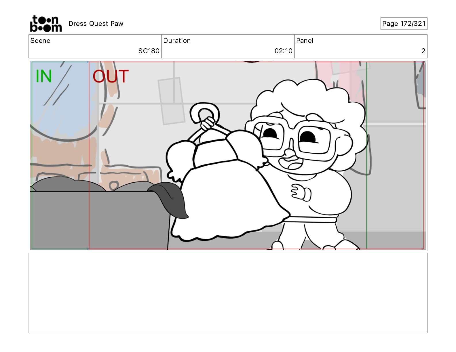 Scene SC320 Duration 01 14 Panel 2 Dress Quest Paw