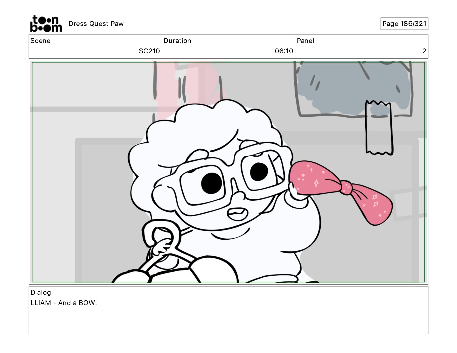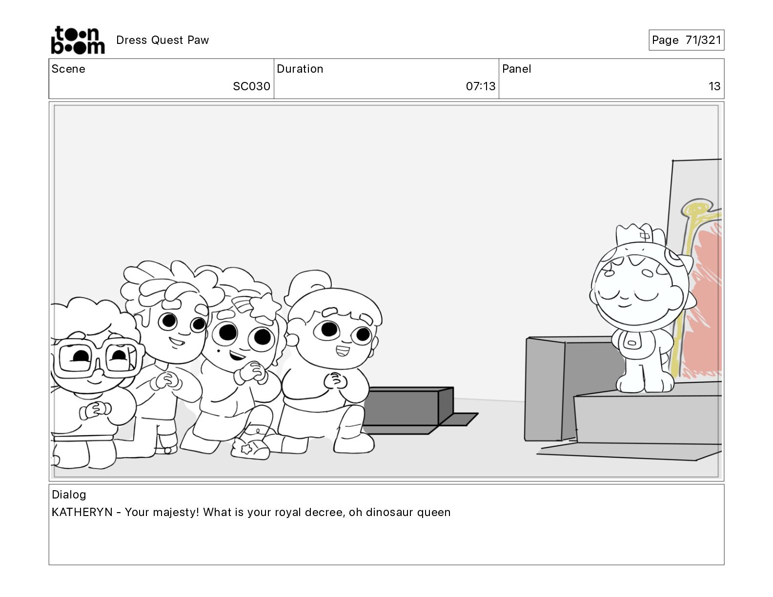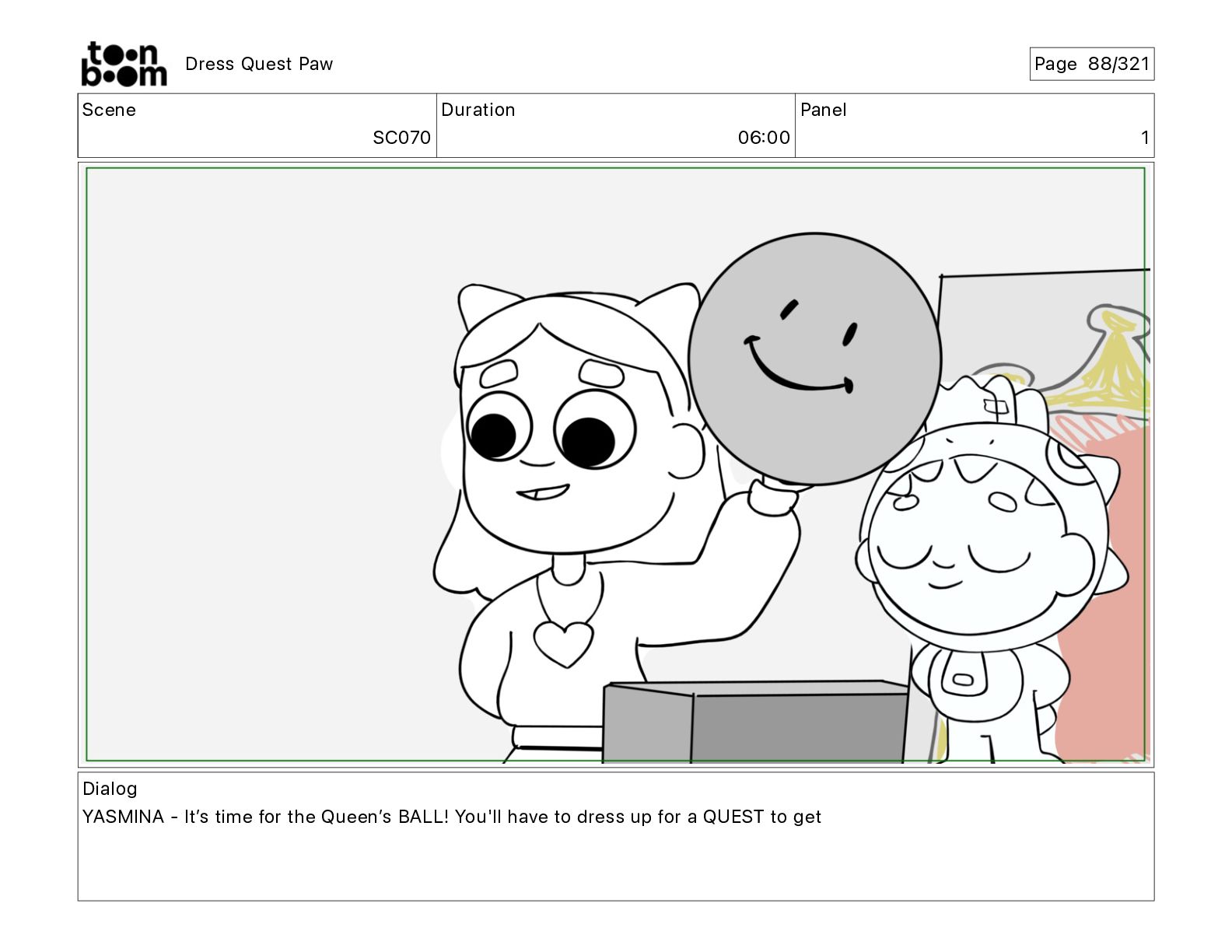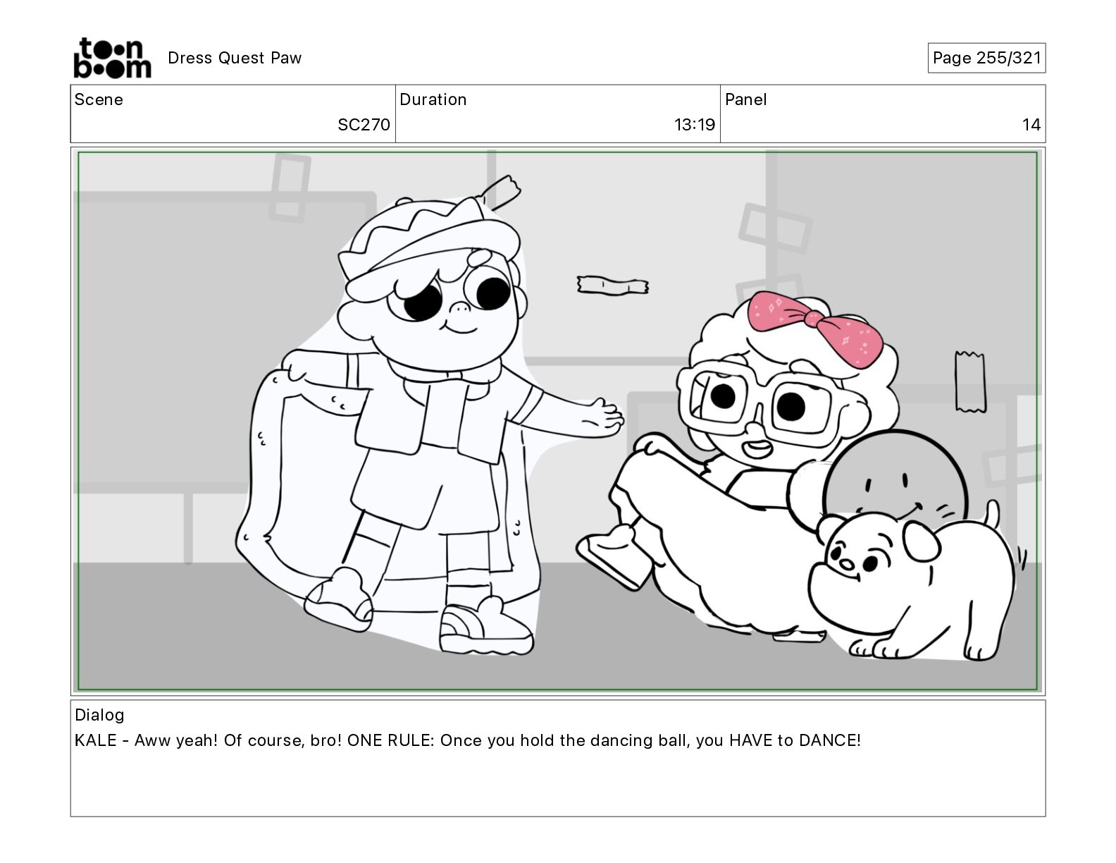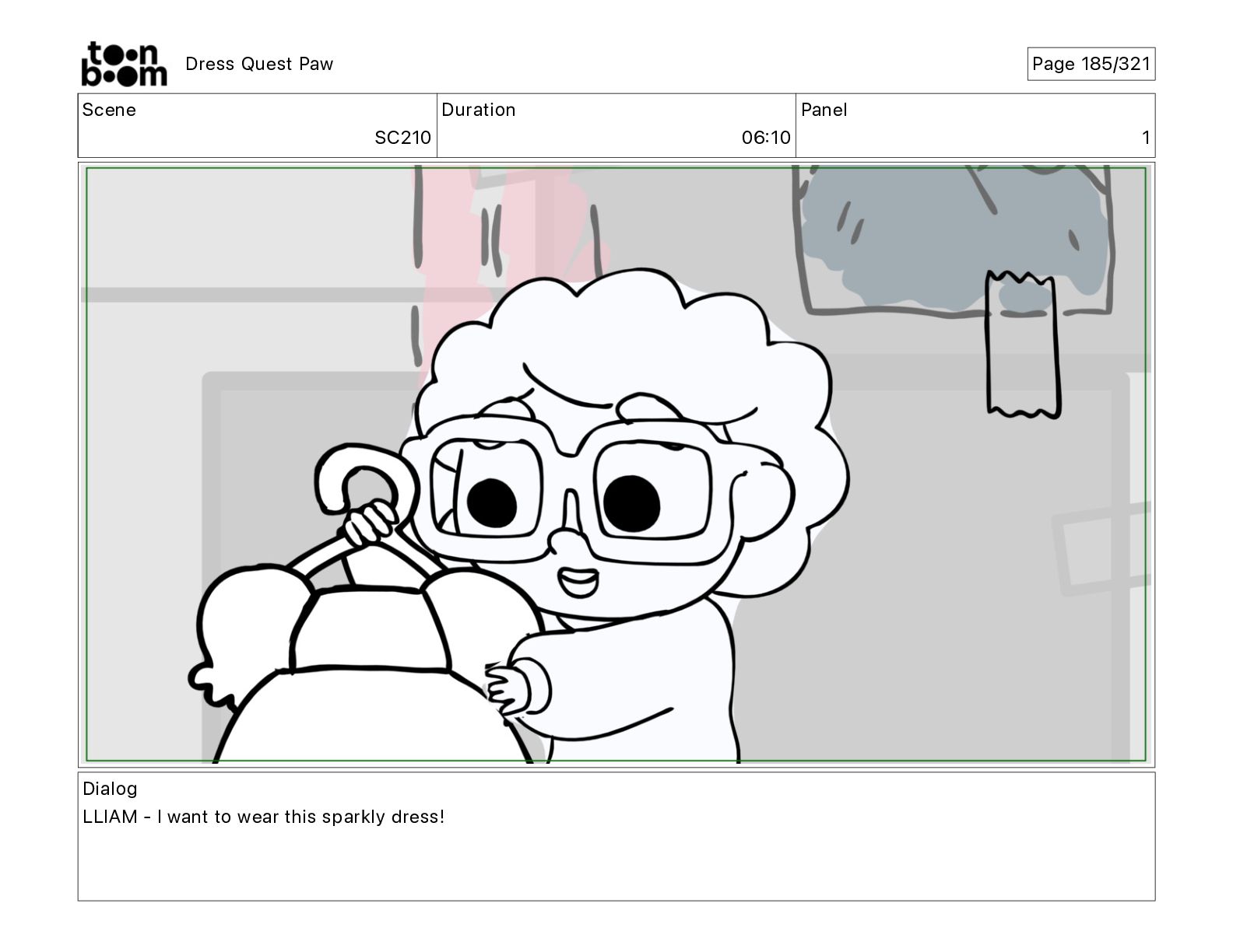 Scene SC320 Duration 01 14 Panel 2 Dress Quest Paw