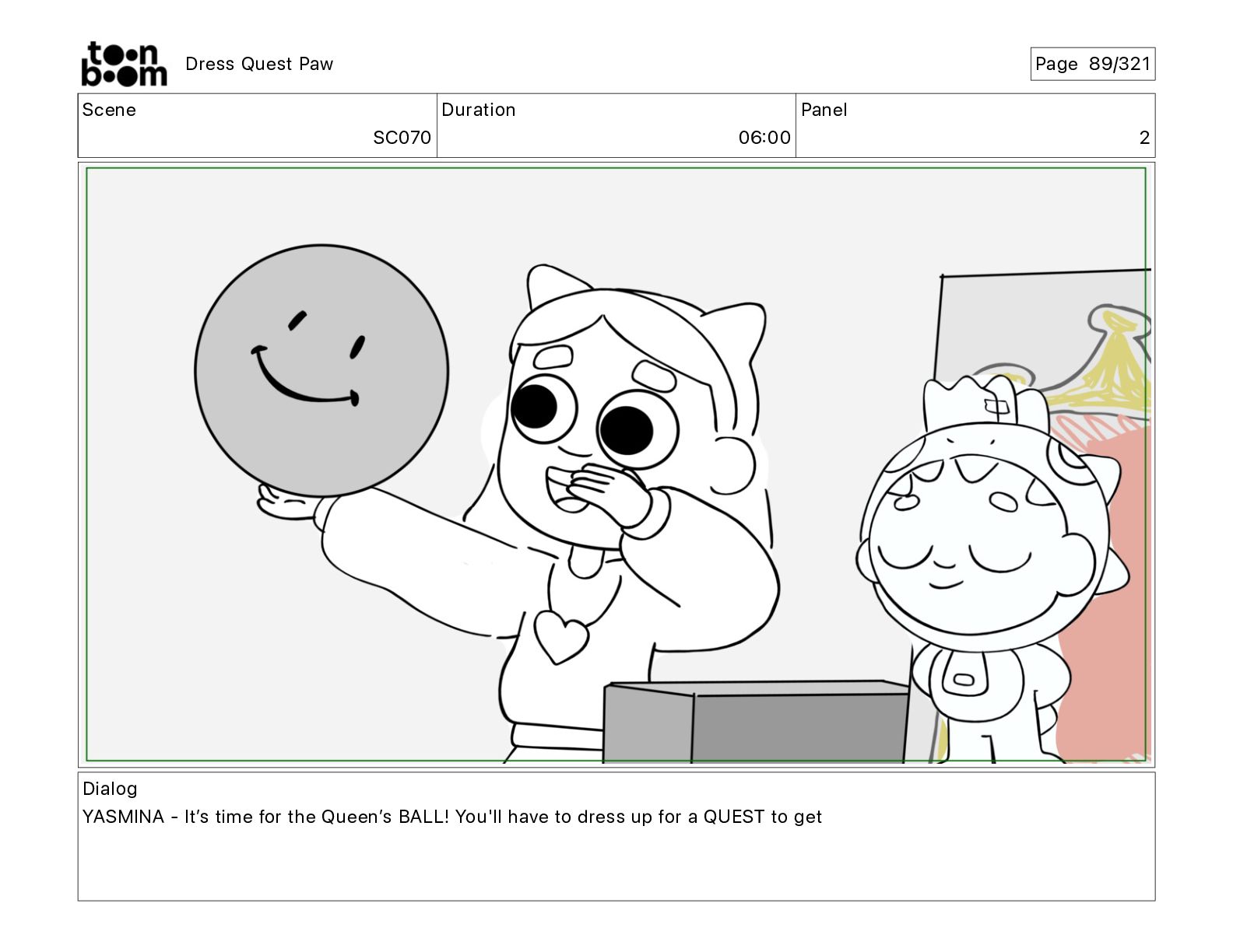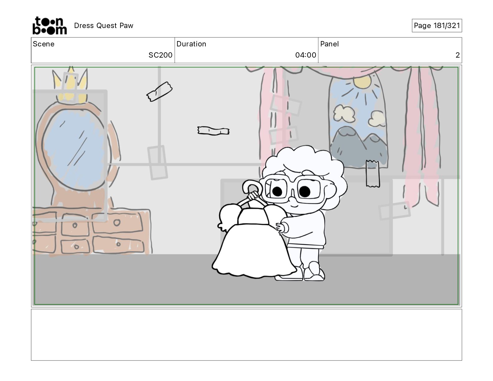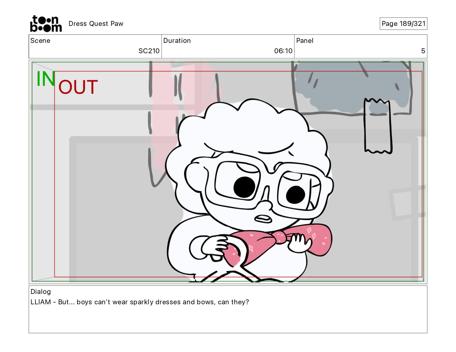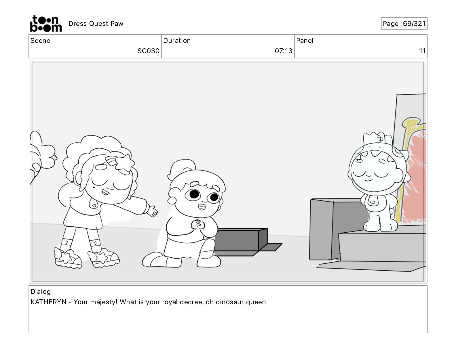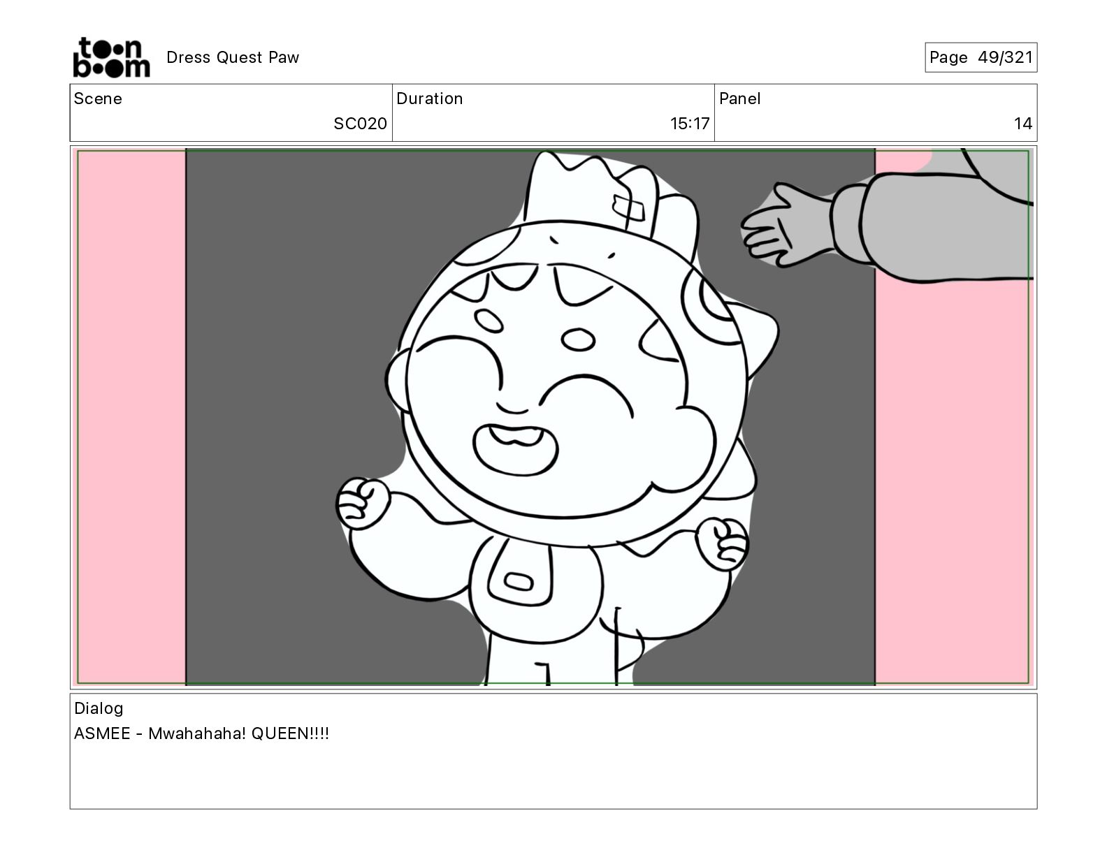 Scene SC320 Duration 01 14 Panel 2 Dress Quest Paw