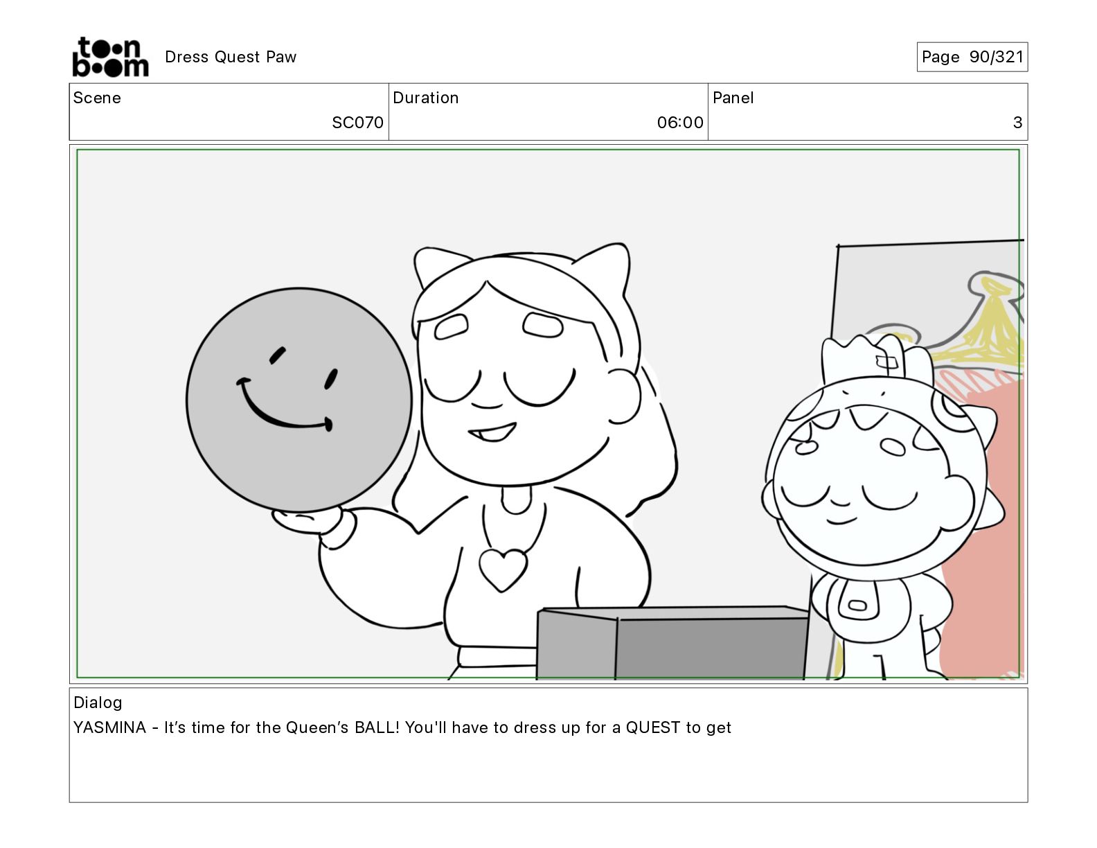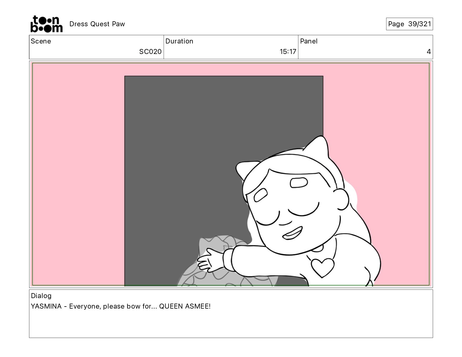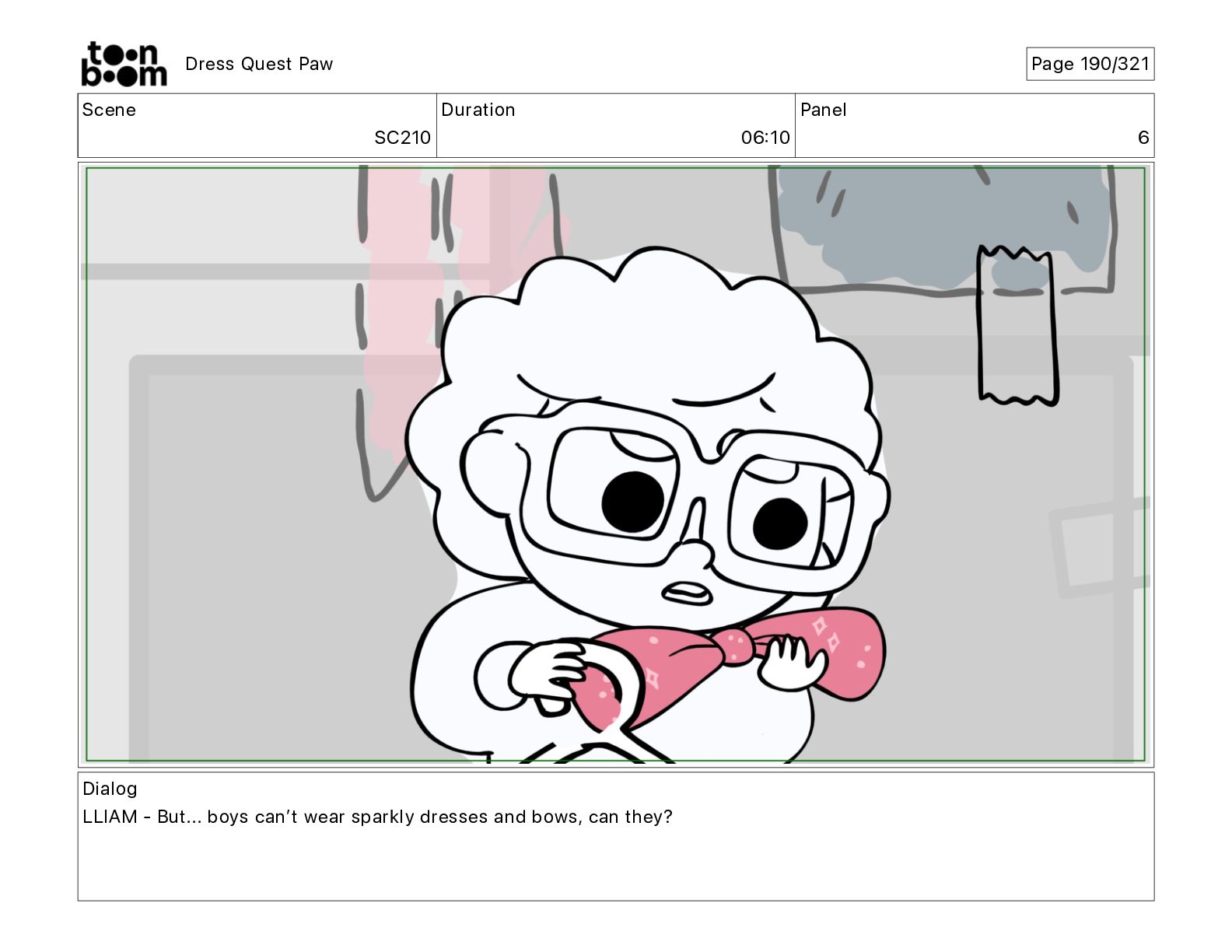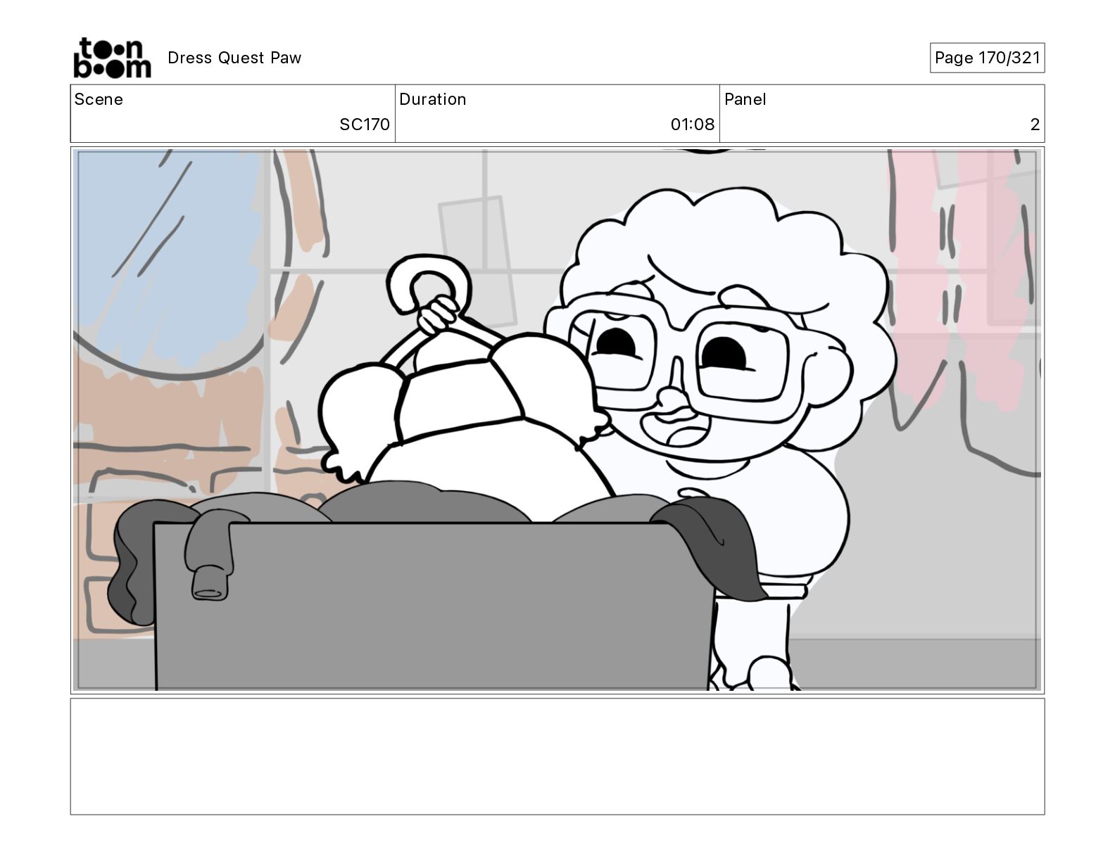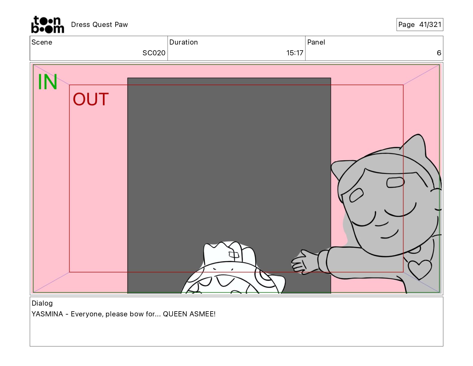 Scene SC320 Duration 01 14 Panel 2 Dress Quest Paw