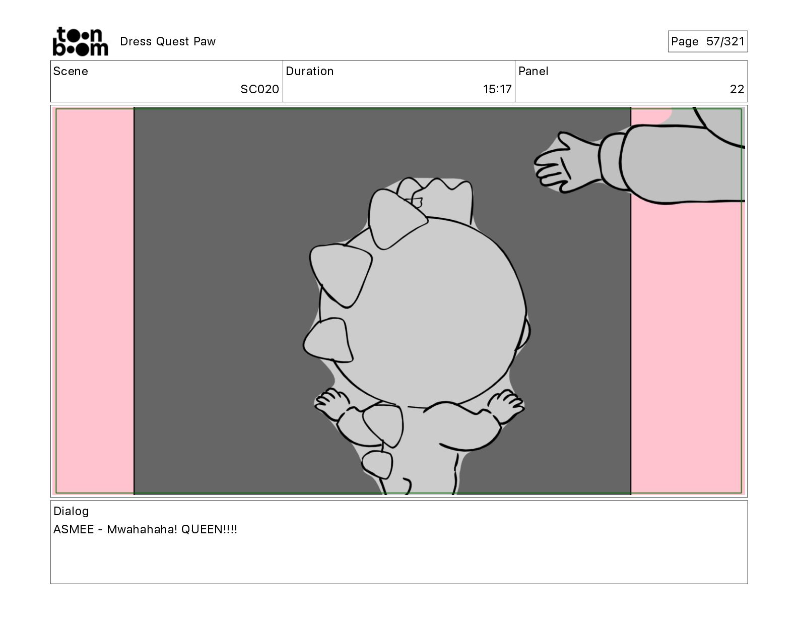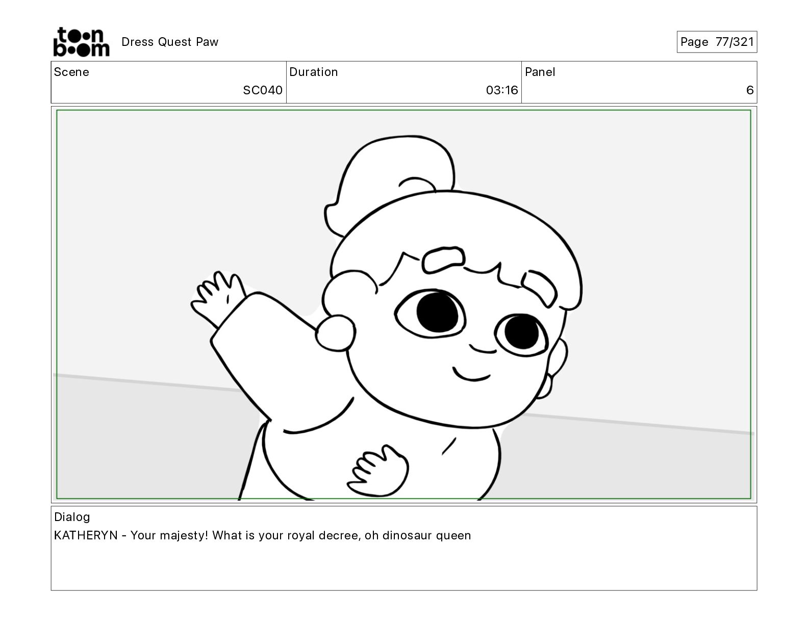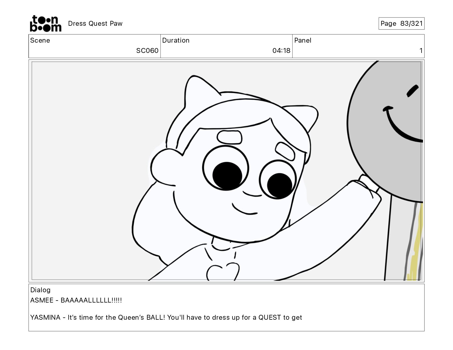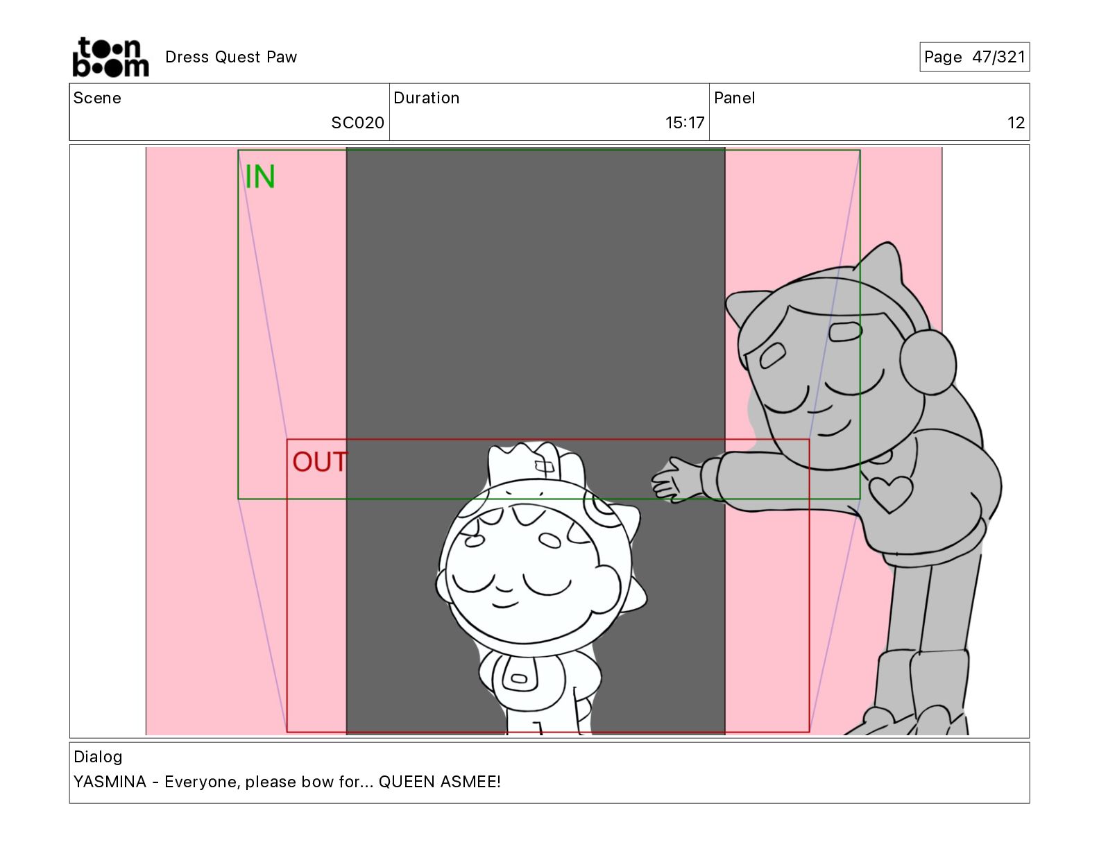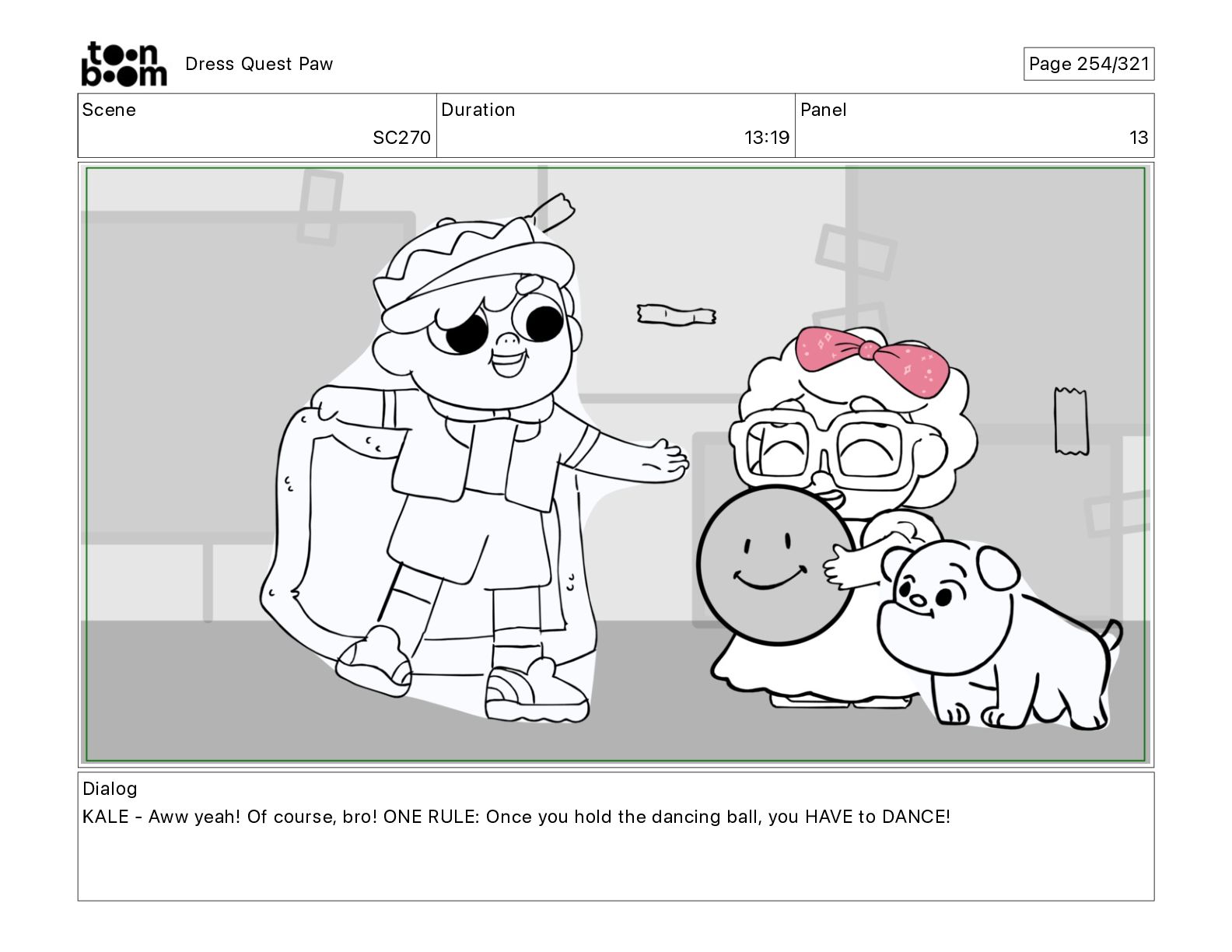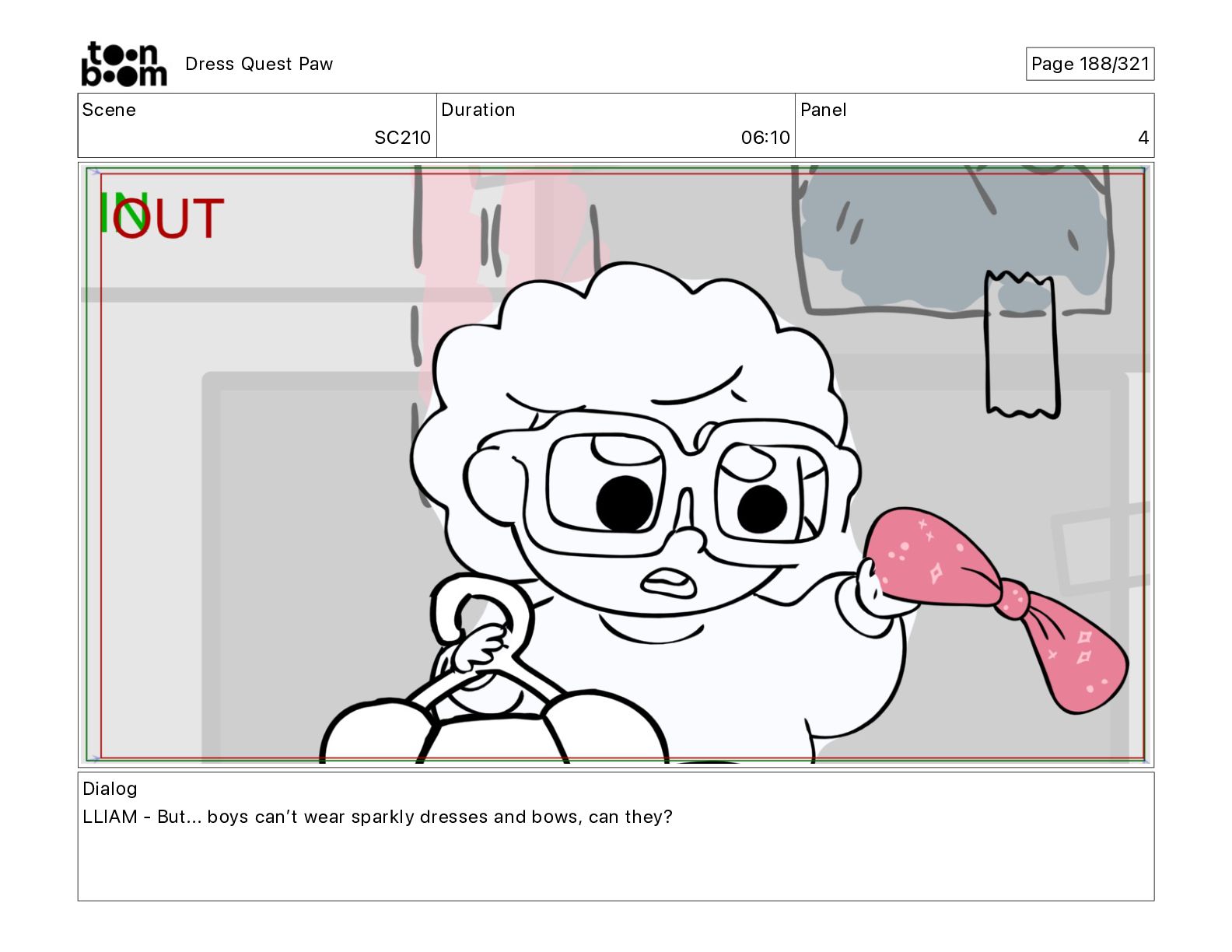 Scene SC320 Duration 01 14 Panel 2 Dress Quest Paw