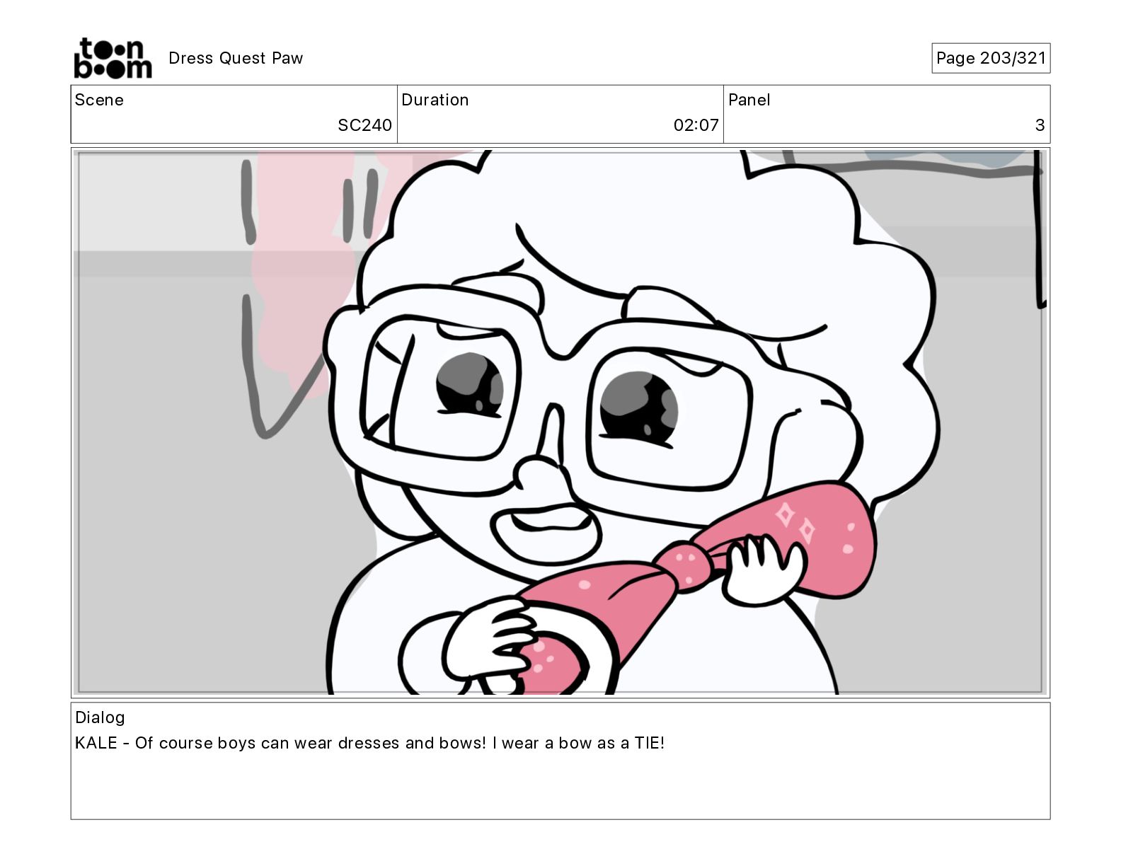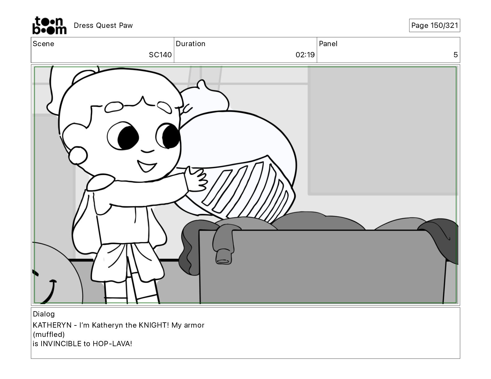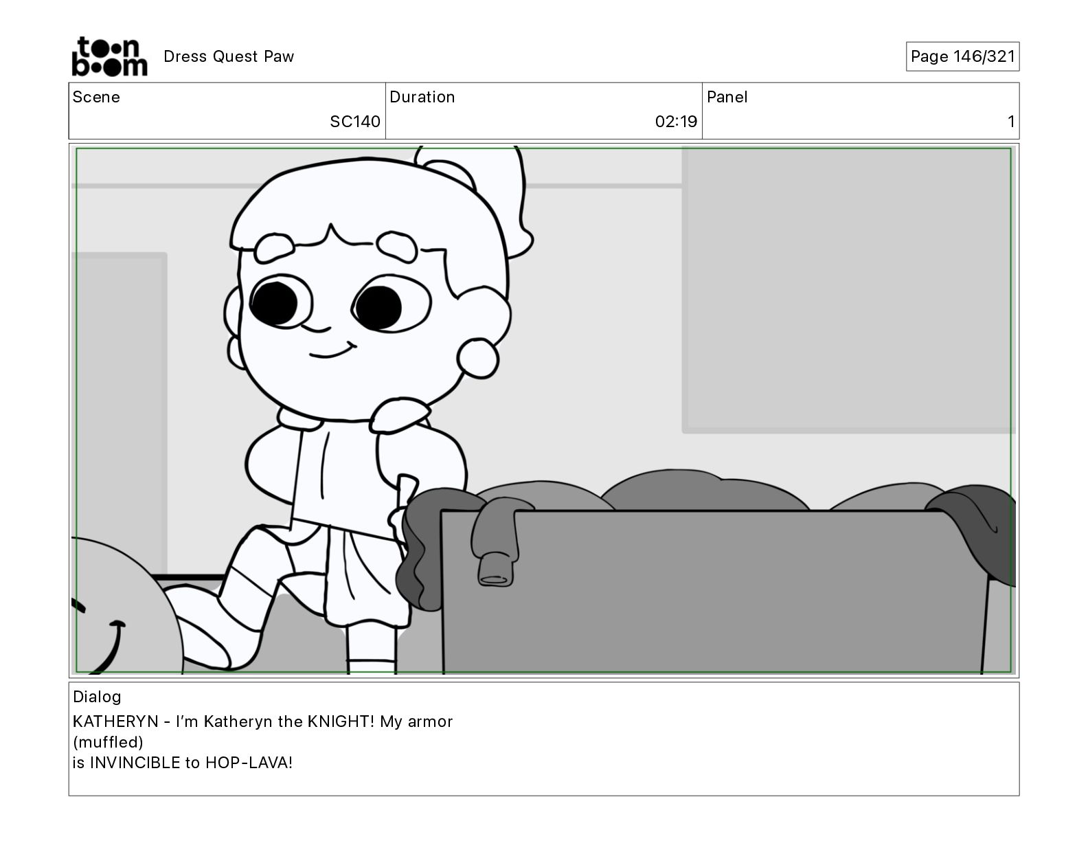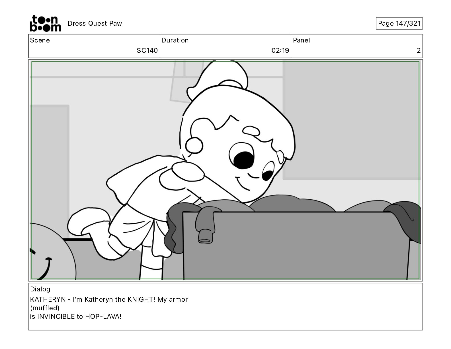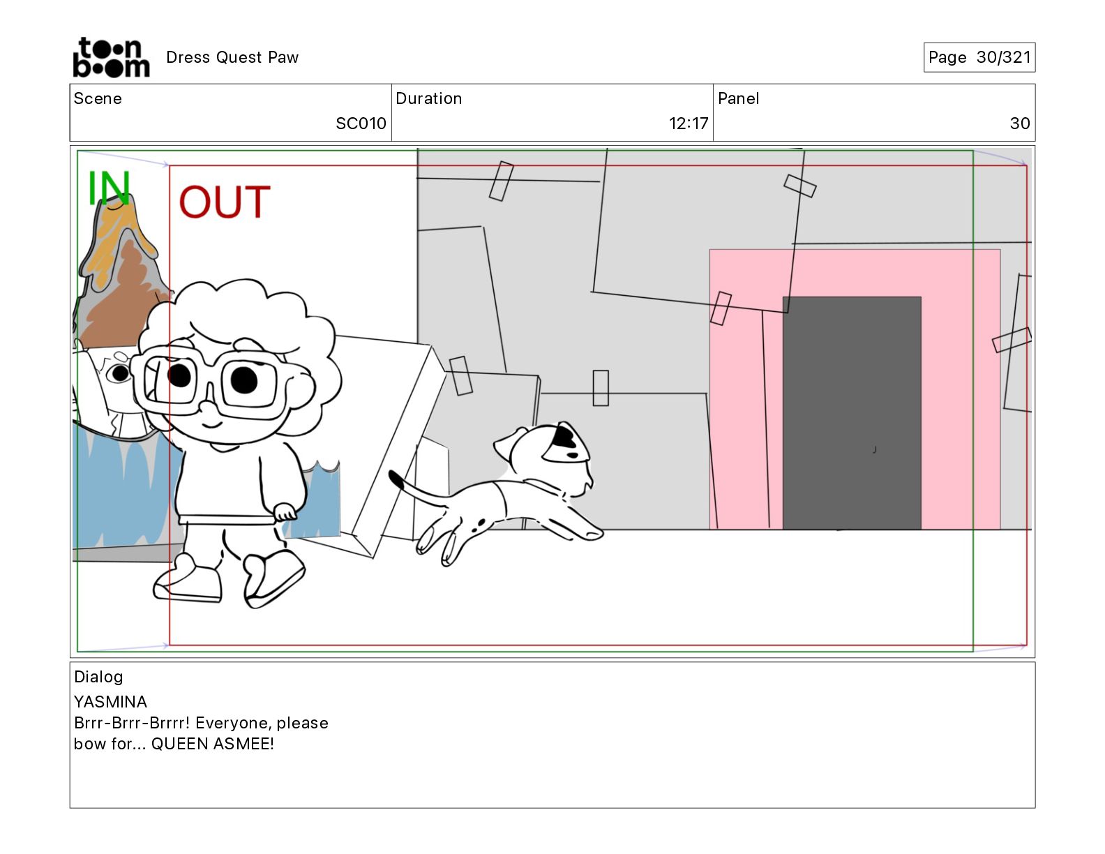 Scene SC320 Duration 01 14 Panel 2 Dress Quest Paw
