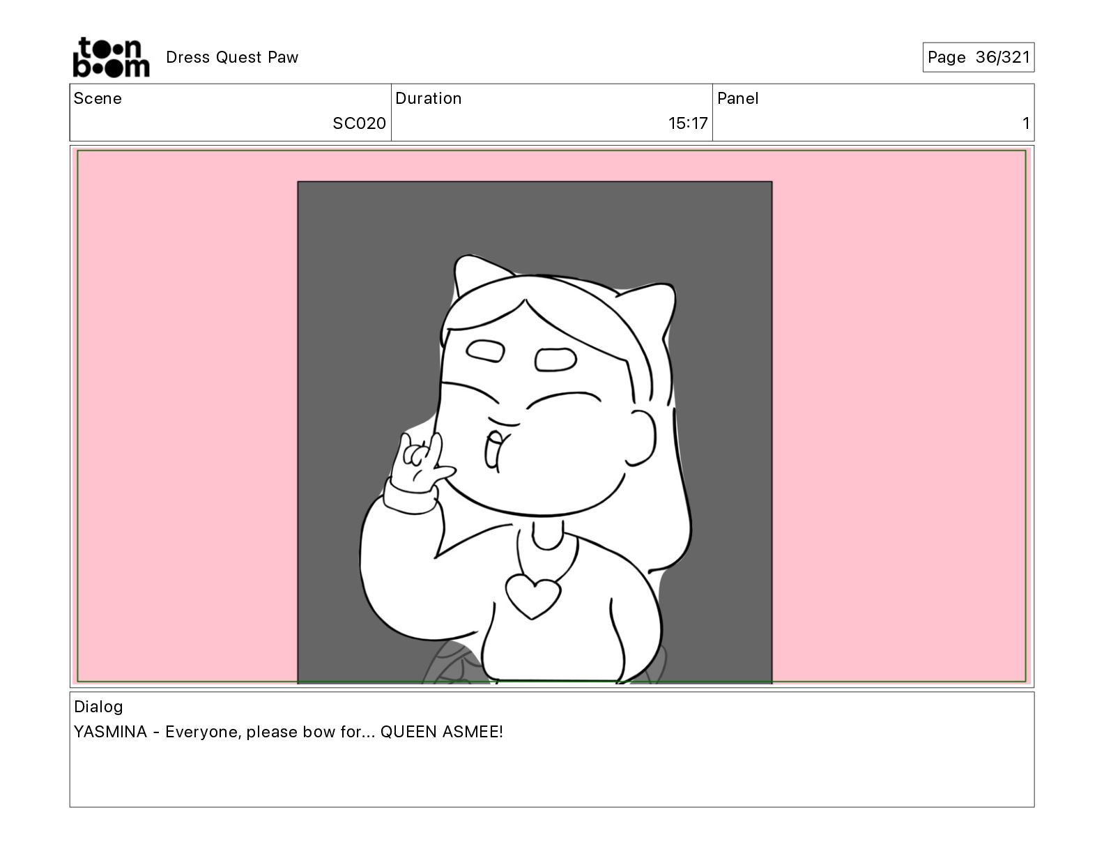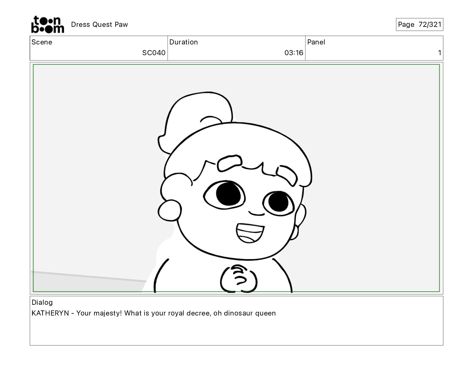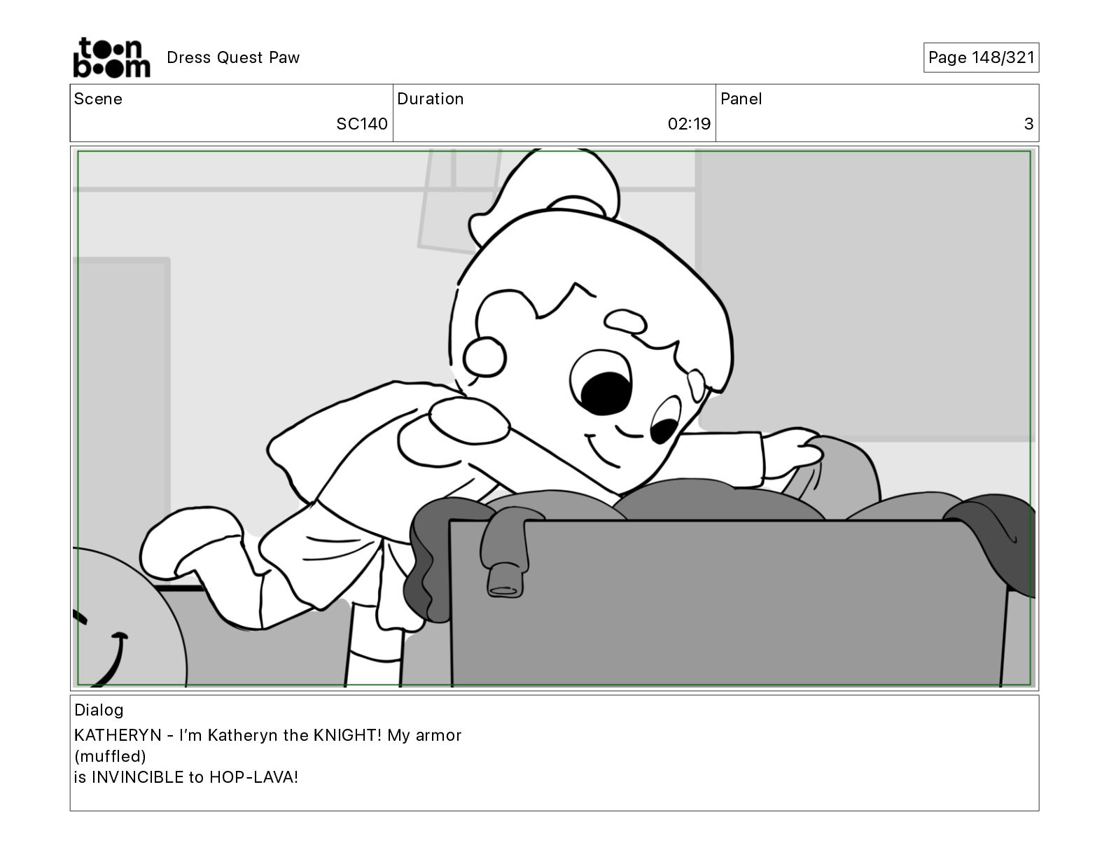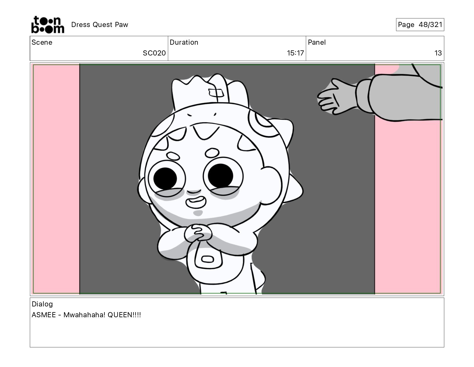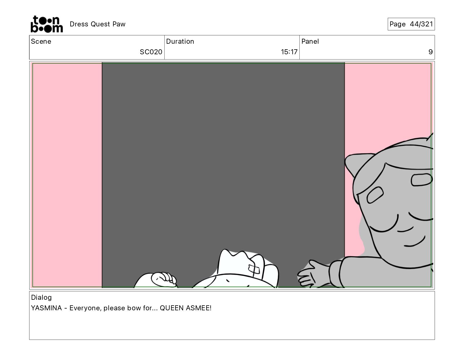 Scene SC320 Duration 01 14 Panel 2 Dress Quest Paw