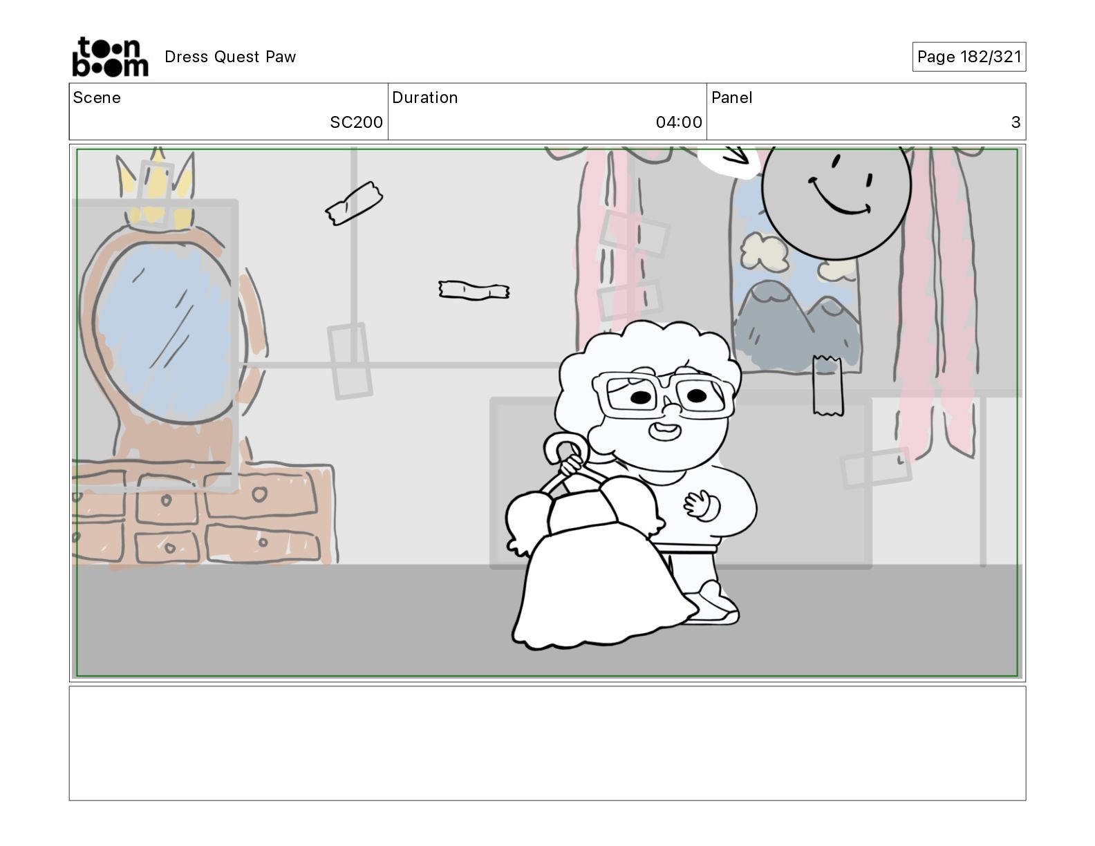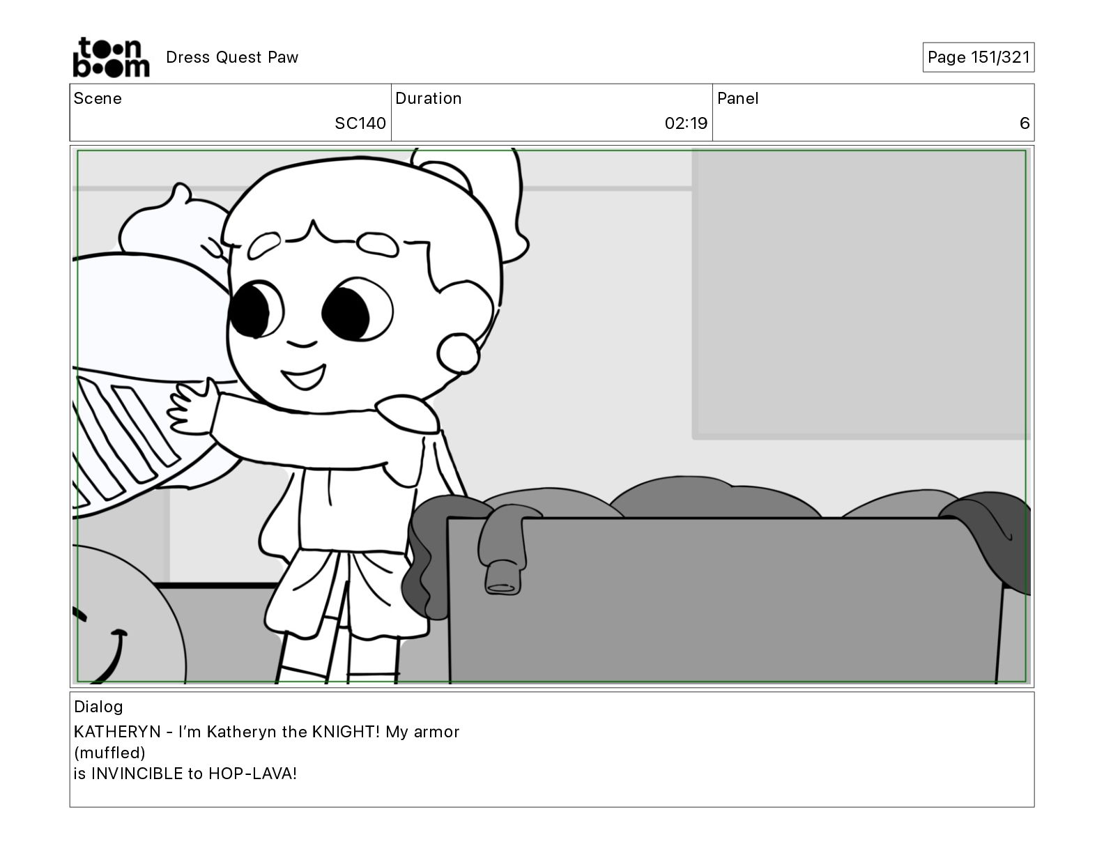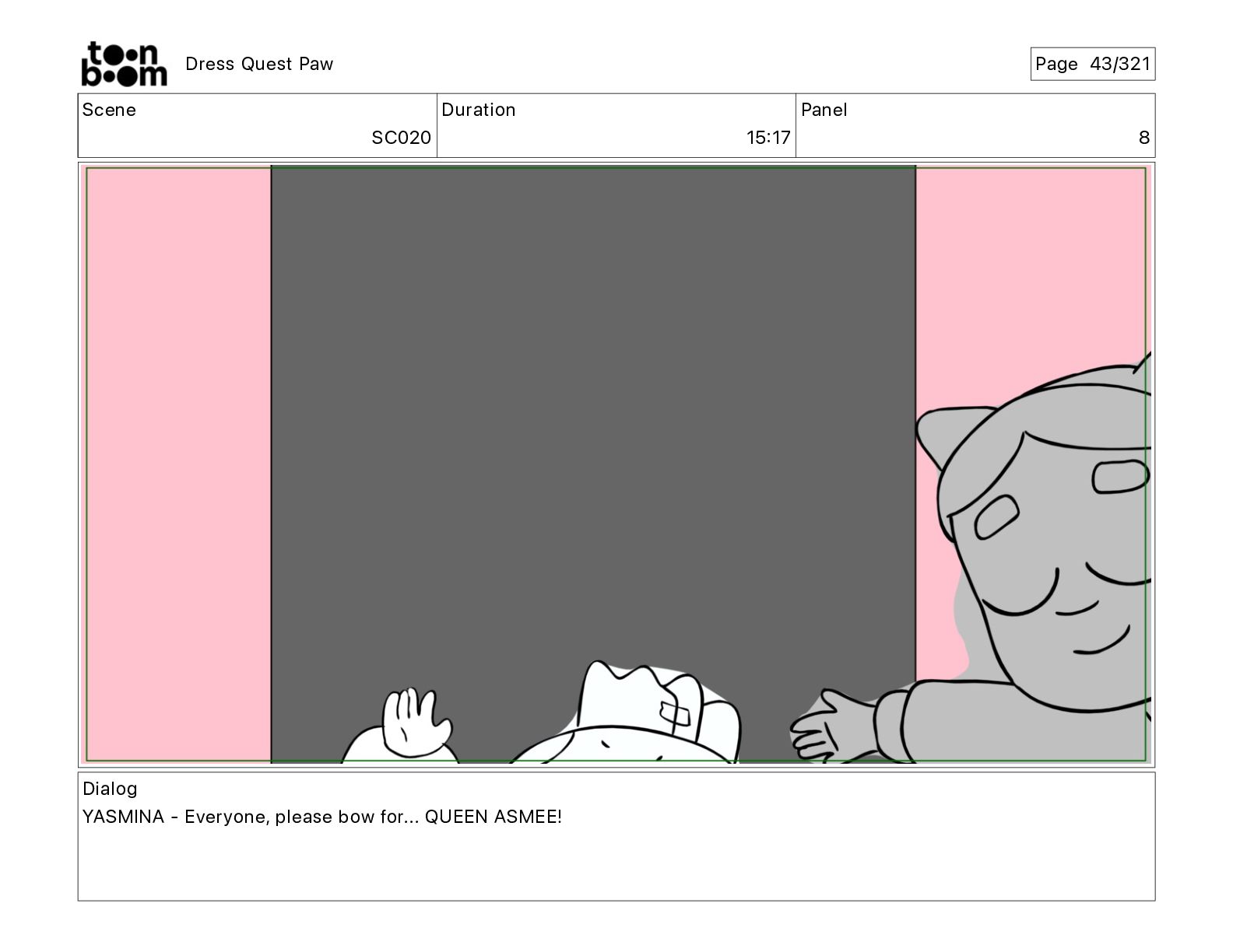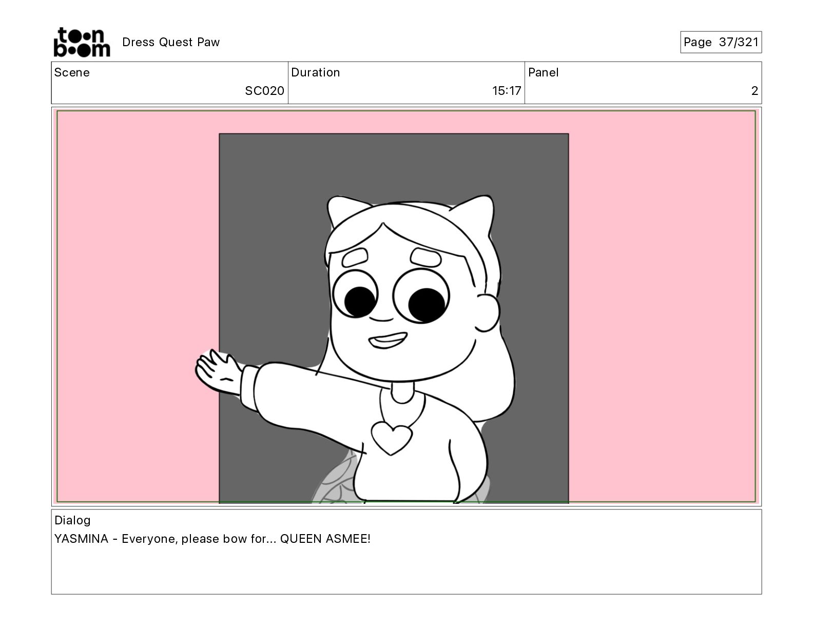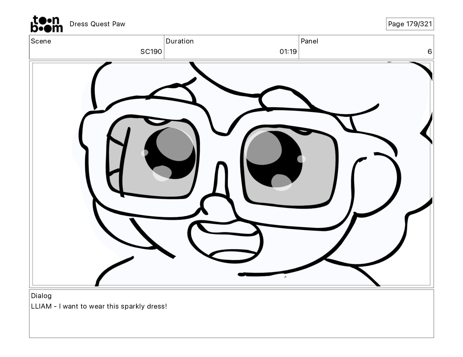 Scene SC320 Duration 01 14 Panel 2 Dress Quest Paw