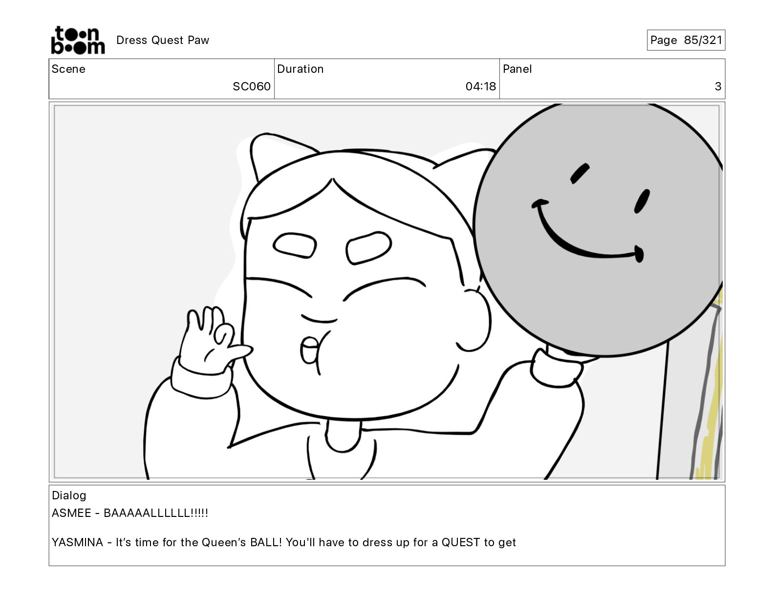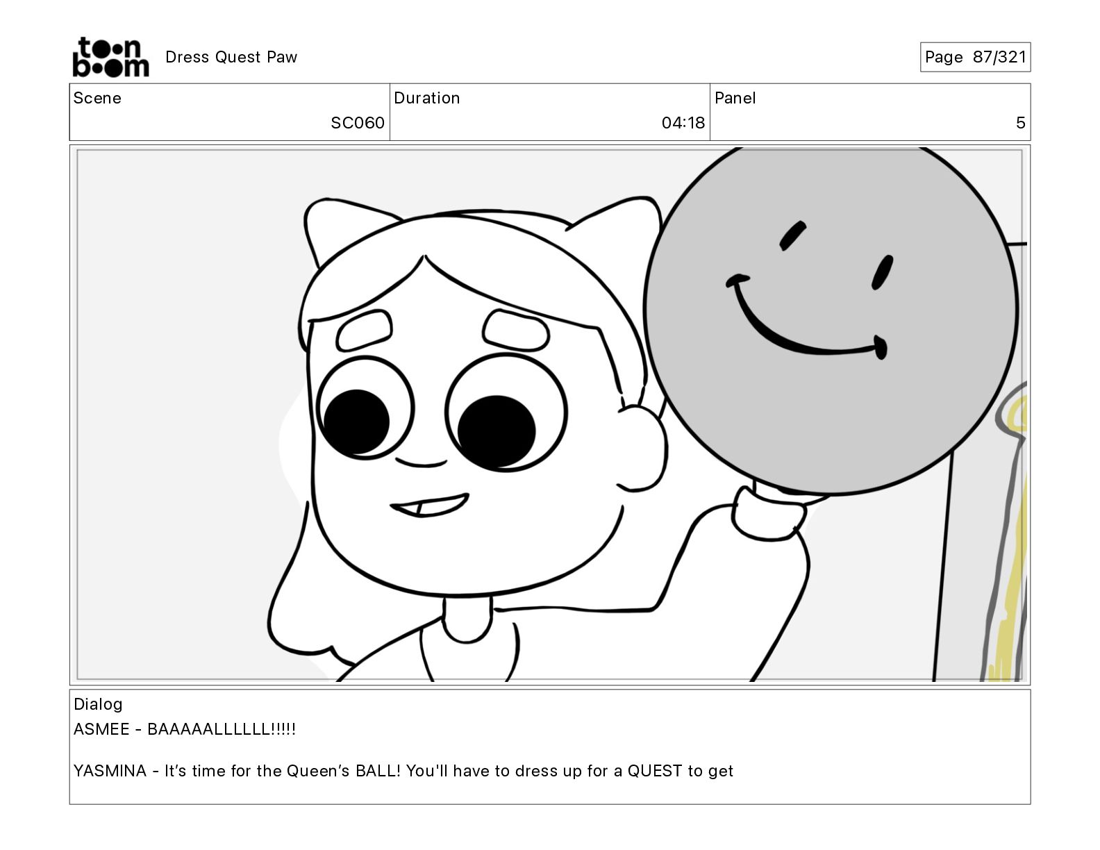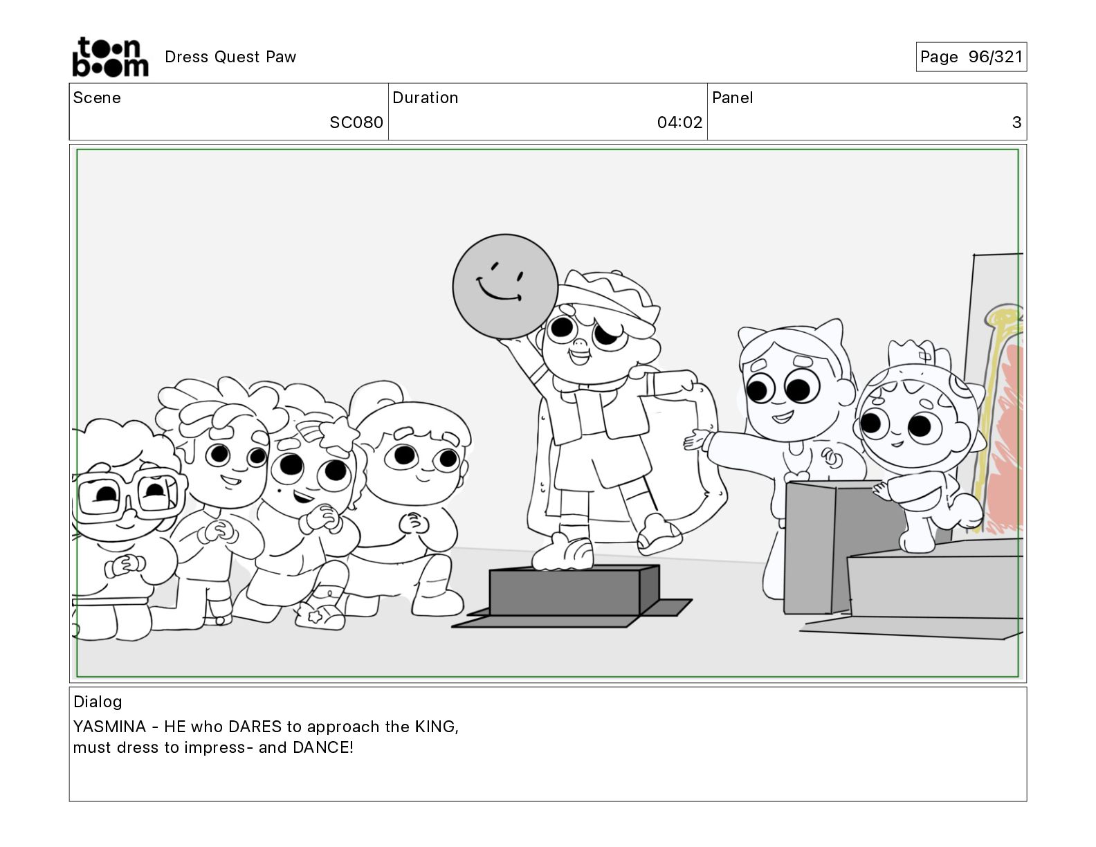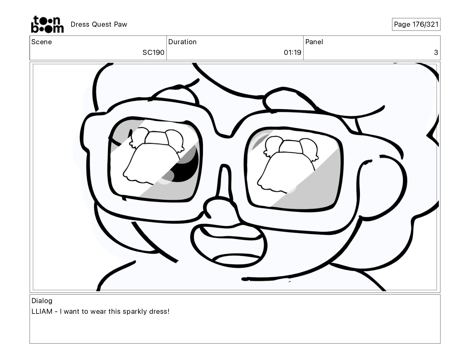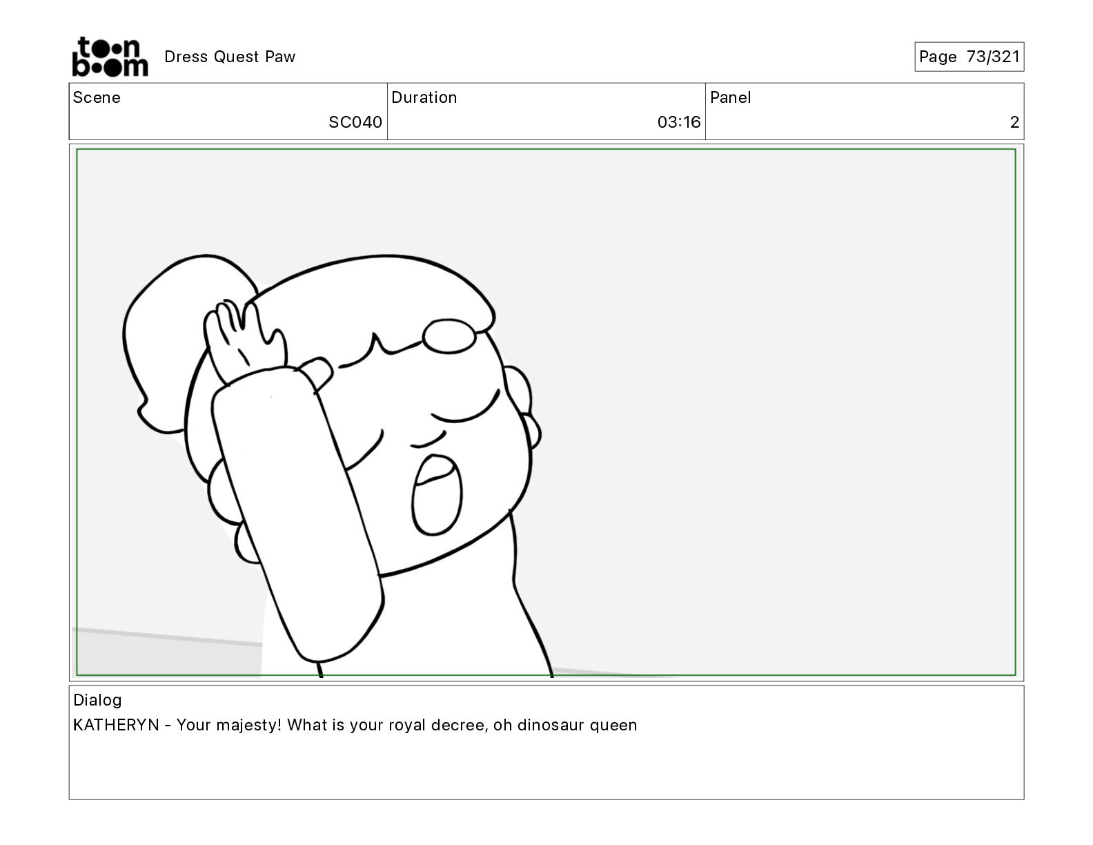 Scene SC320 Duration 01 14 Panel 2 Dress Quest Paw