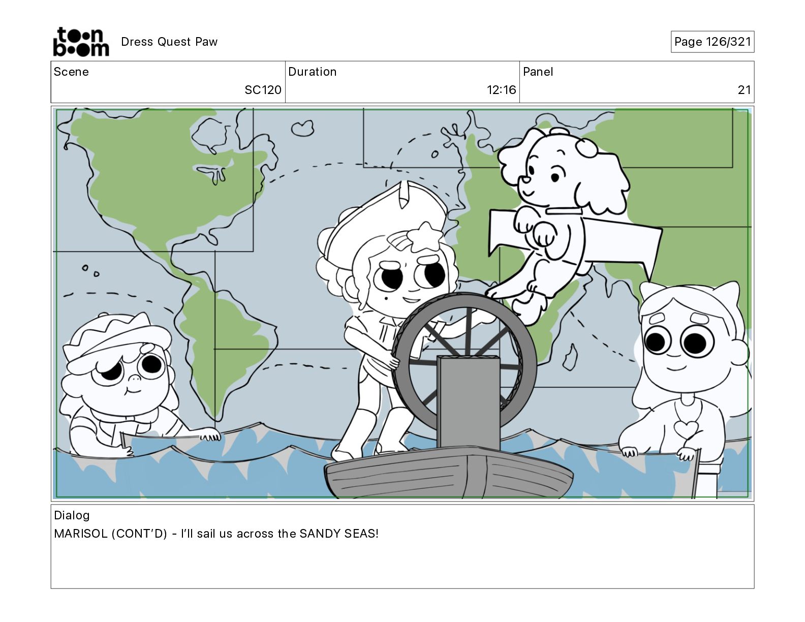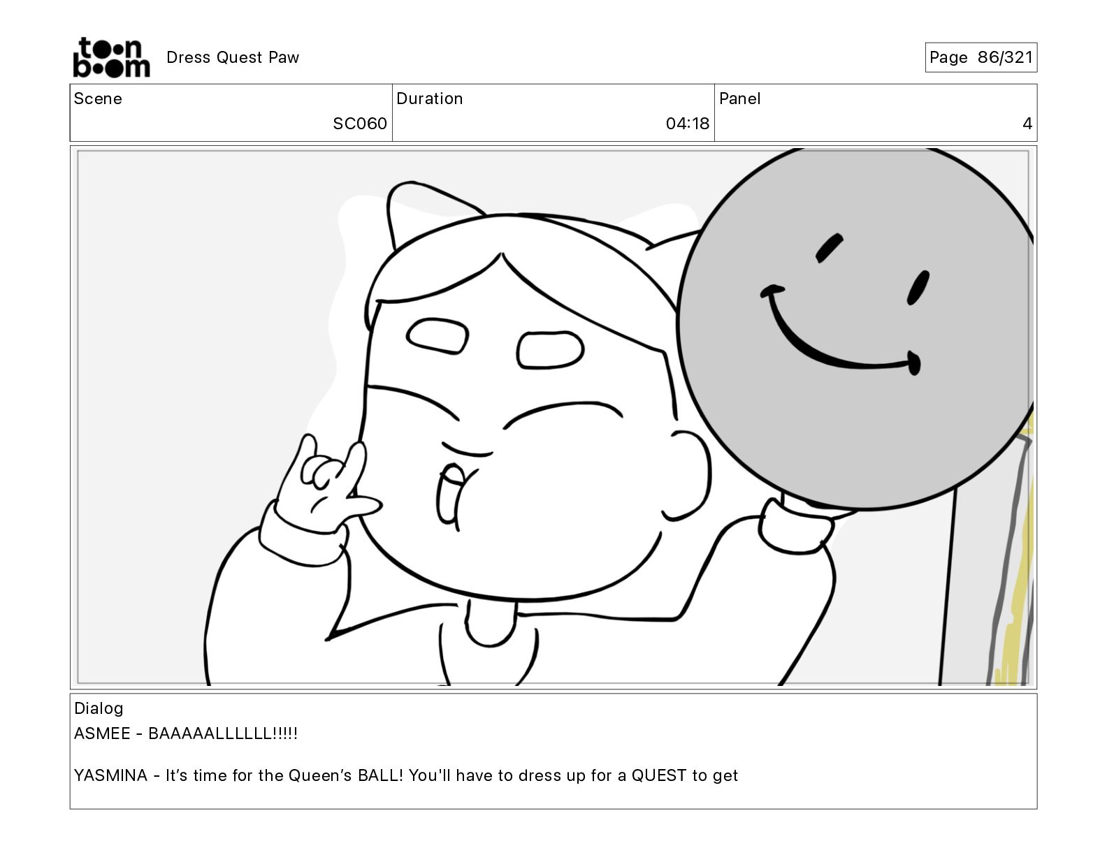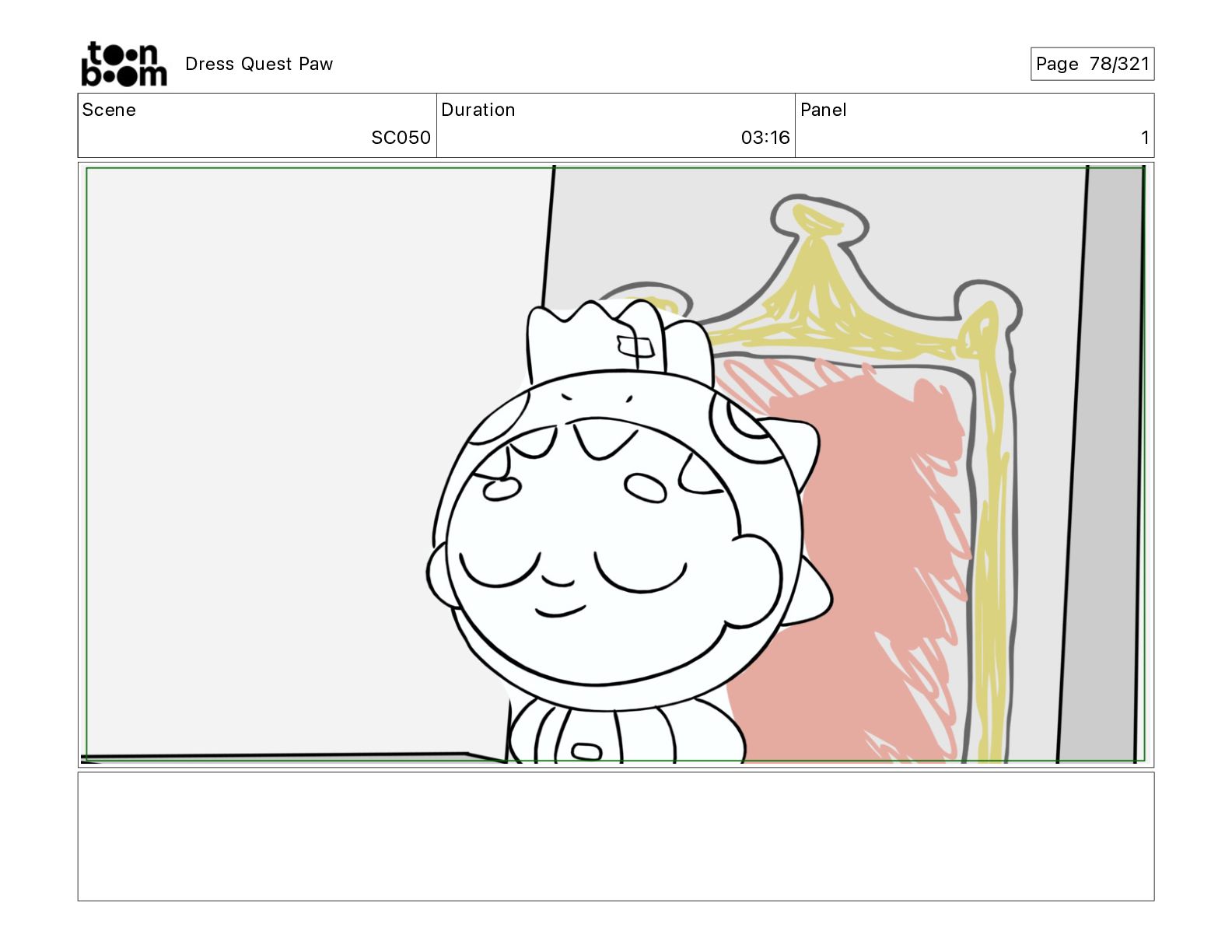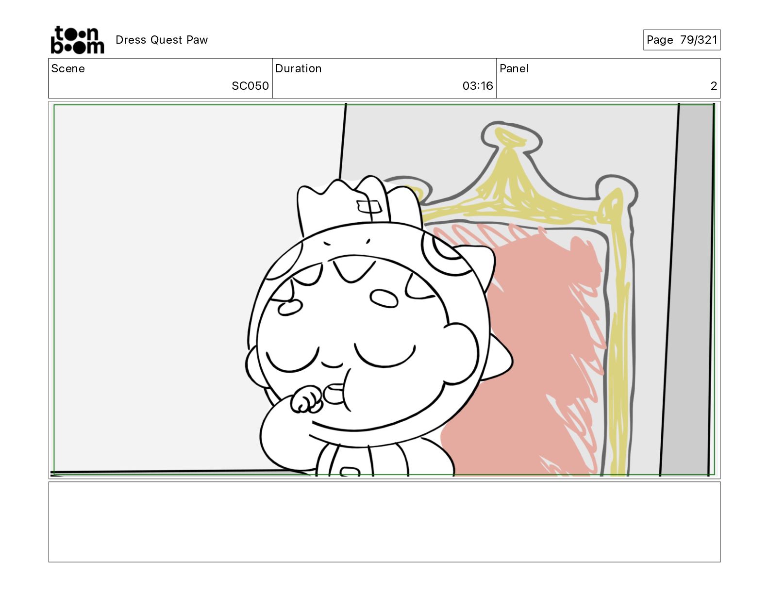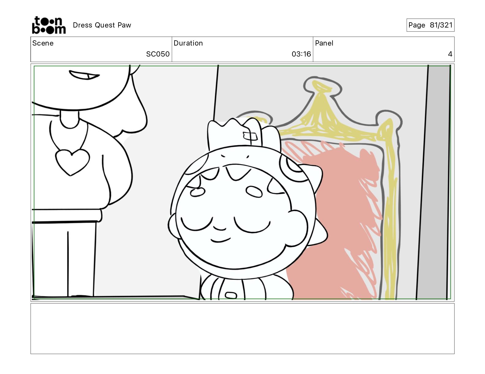 Scene SC320 Duration 01 14 Panel 2 Dress Quest Paw