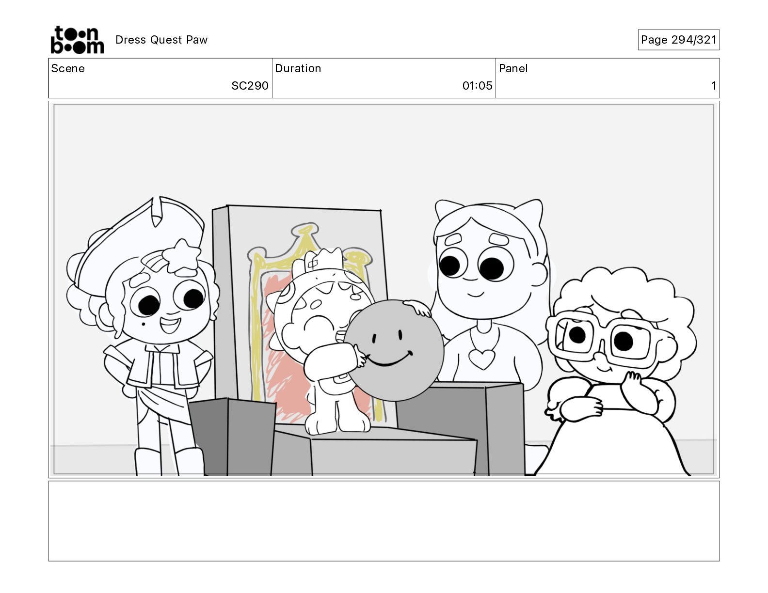 Scene SC290 Duration 01 05 Panel 1 Dress Quest Paw
