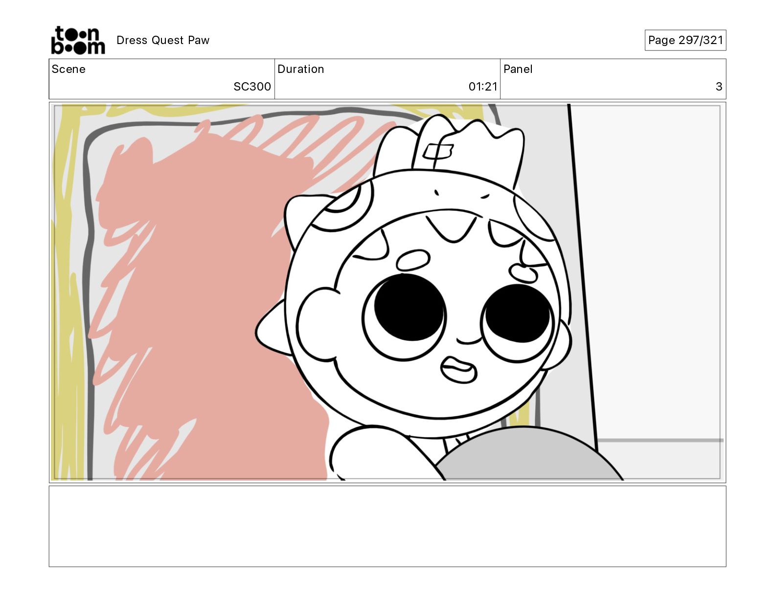 Scene SC300 Duration 01 21 Panel 3 Dress Quest Paw