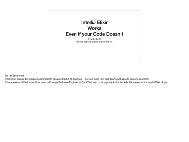Developers will learn how IntelliJ Elixir can be used to understand their code easier and faster even in the face of errors or gnarly macros.