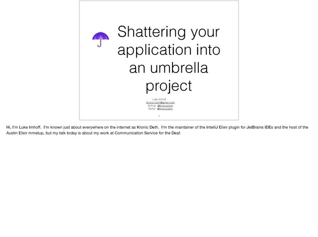 With the announcement of Phoenix 1.3 supporting umbrella projects at ElixirConf 2016, I was inspired to start early on converting our Phoenix 1.2 application to umbrella. Since the umbrella project templates weren't publicly available yet, I had to find the seams in our single, monolithic application where I could start breaking it into OTP apps for the umbrella project.