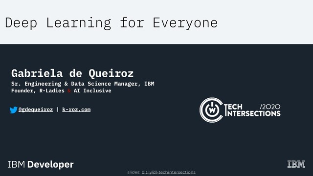 open source developers! Watson West Building 505 Howard St. San Francisco, California Improving Enterprise AI lifecycle in Open Source Gather Data Analyze Data Machine Learning Deep Learning Deploy Model Maintain Model Python Data Science Stack Fabric for Deep Learning (FfDL) Mleap + PFA Scikit-Learn Pandas Apache Spark Apache Spark Jupyter Model Asset eXchange Keras + Tensorflow CODAIT codait.org Gather Data Analyze Data Machine Learning Deep Learning Deploy Model Maintain Model Python Data Science Stack Fabric for Deep Learning (FfDL) PFA, PMML, ONNX Scikit-Learn Pandas Apache Spark Jupyter Model Asset eXchange (MAX) Tensorflow + PyTorch AIF360 ART AIF360 ART AIF360 ART Apache Spark Data Asset eXchange (DAX) Build tools to make AI accessible to all @gdequeiroz | www.k-roz.com