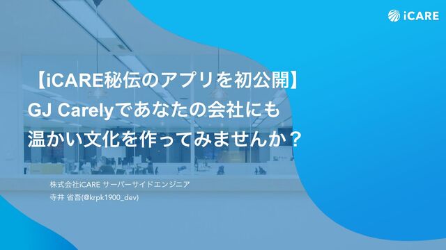 גࣜձࣾiCARE αʔόʔαΠυΤϯδχΞ ࣉҪ লޗ(@krpk1900_dev) ʲiCAREൿͷΞϓϦΛॳެ։ʳ GJ CarelyͰ͋ͳͨͷձࣾʹ Թ͔͍จԽΛ࡞ͬͯΈ·ͤΜ͔ʁ