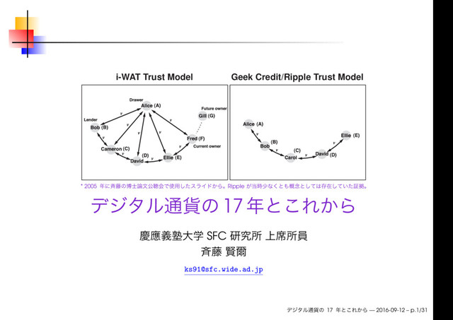 PPay (2003), i-WAT (2003) IOU Ripple ( ) : P2P P2P 17 — 2016-09-12 – p.11/31