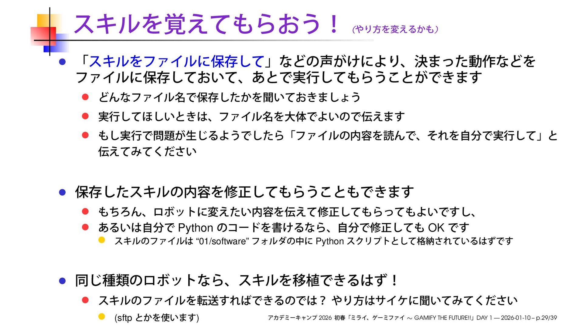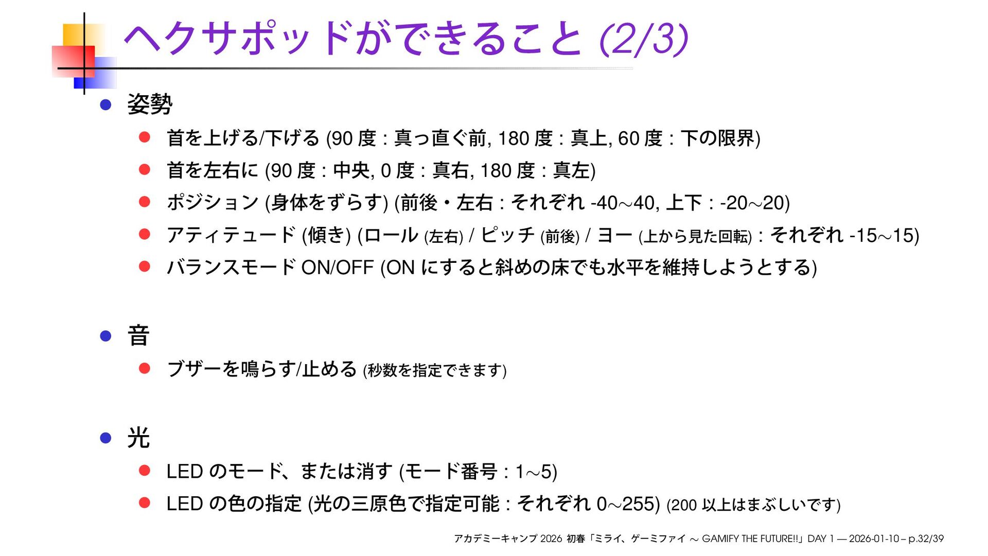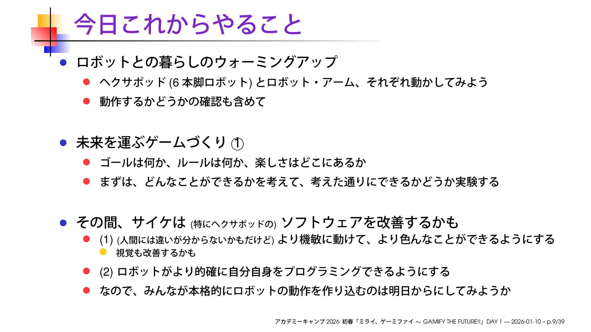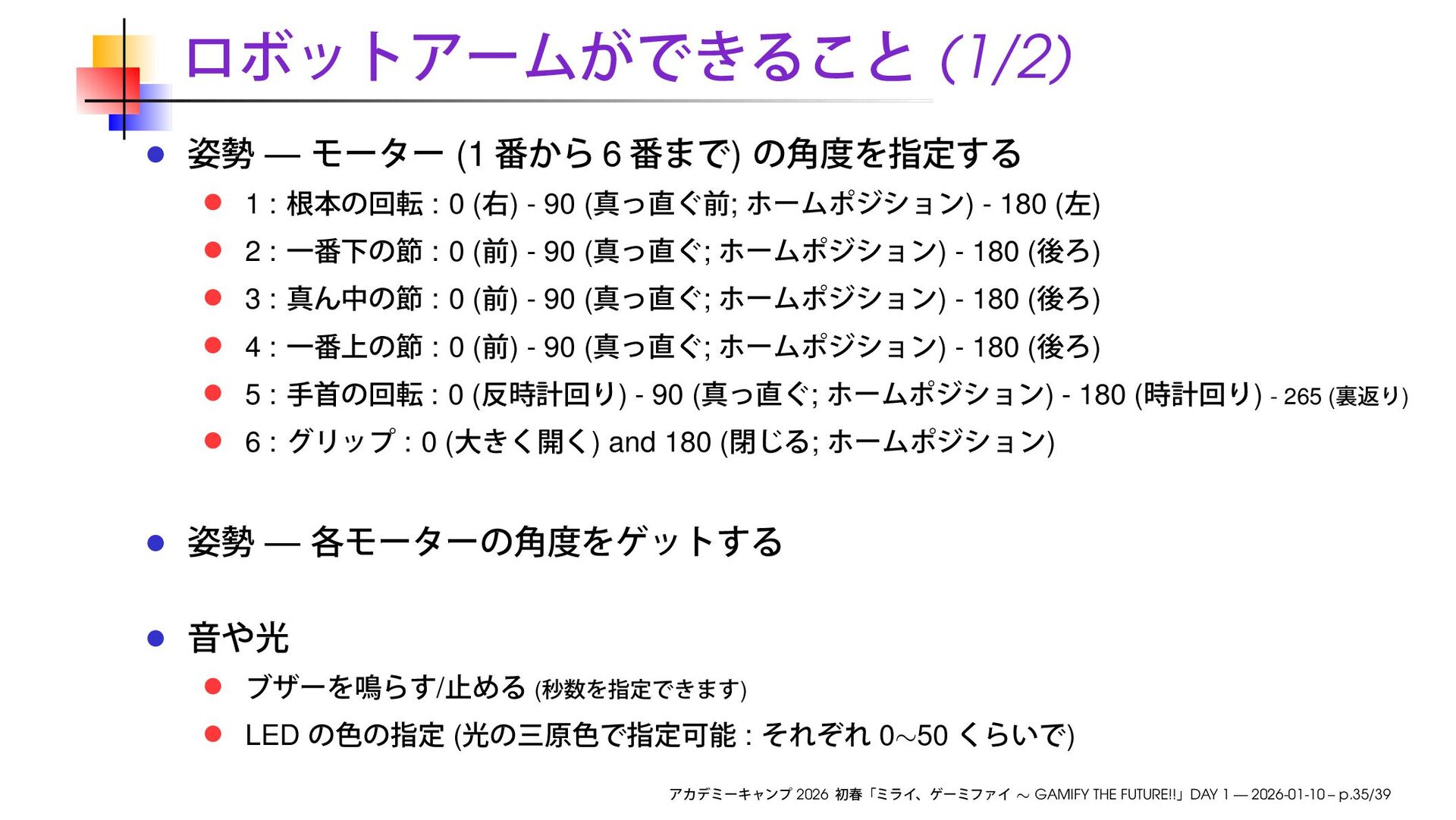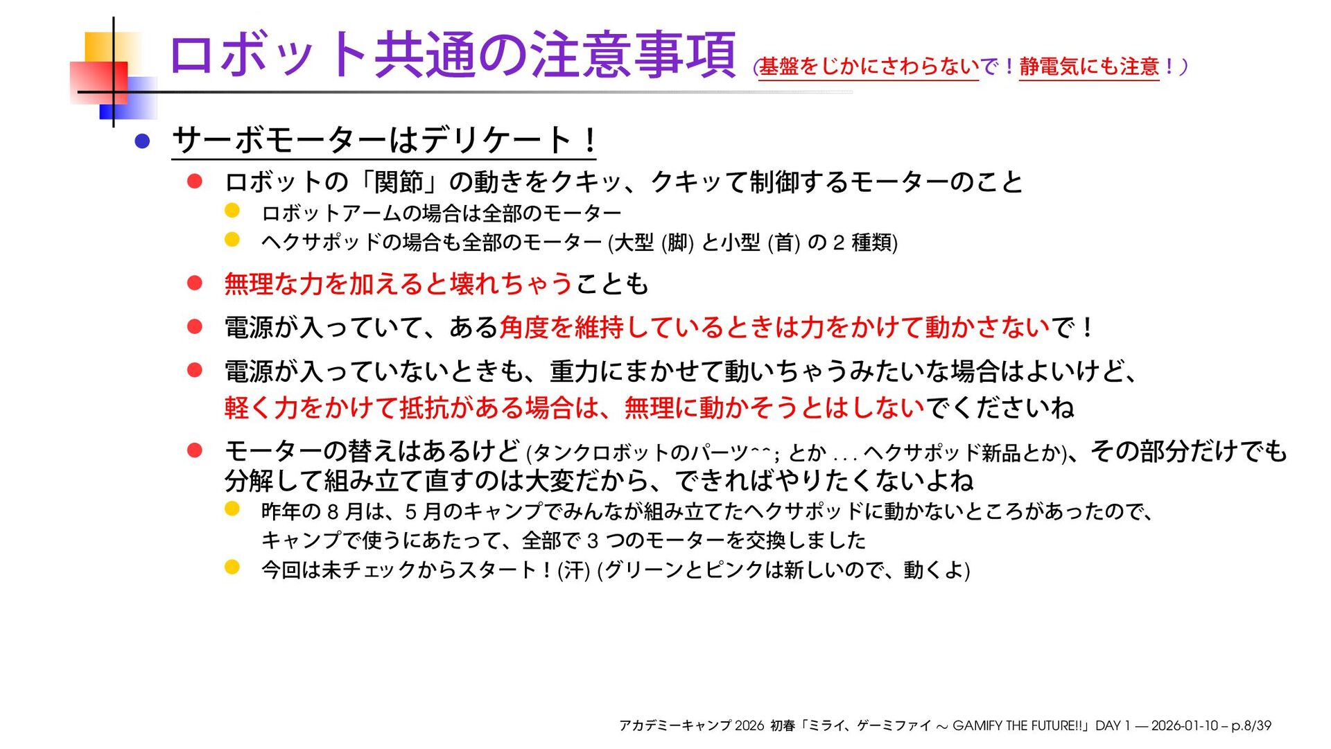 ( ) ON (3) iPad (mini) (4) iPad RVNC Viewer IP OFF ( ) (1) (2) (3) Shutdown (4) LED → OFF micro SD 2026 ∼ GAMIFY THE FUTURE!! DAY 1 — 2026-01-10 – p.21/39