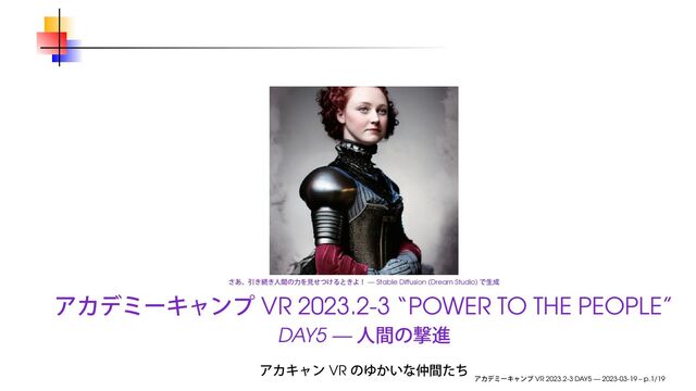 2023年3月19日に開催されたアカデミーキャンプ VR 2023.2-3 "POWER TO THE PEOPLE" DAY5 で用いたスライドです。