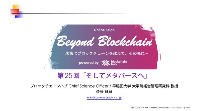 2022年9月12日(月)、オンラインサロン Beyond Blockchain 第25回にて使用したスライドです。