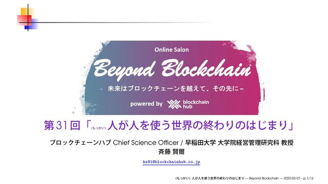 2023年3月7日(火)、オンラインサロン Beyond Blockchain 第31回にて使用したスライドです。