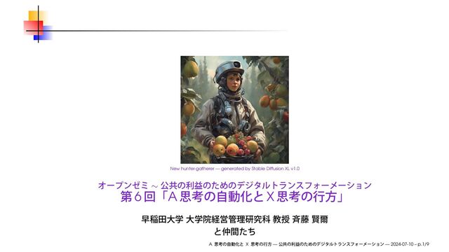 2024年7月10日(水)、オンラインで開催された、オープンゼミ 〜 公共の利益のためのデジタルトランスフォーメーション 第6回で使用したスライドです。