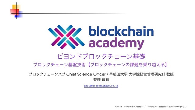 ϏϤϯυϒϩοΫνΣʔϯجૅ ϒϩοΫνΣʔϯج൫ٕज़ʲϒϩοΫνΣʔϯͷ՝ΛΓӽ͑Δʳ ϒϩοΫνΣʔϯϋϒ Chief Science Officer / ૣҴాେֶ େֶӃܦӦཧݚڀՊ ڭत