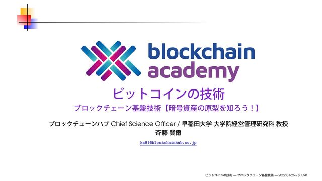 2022年7月13日(水)、ブロックチェーンハブ主催のブロックチェーンアカデミーにて使用したスライドです。