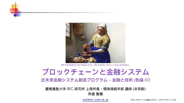 2018年12月4日(火)、東京大学にて開催された「近未来金融システム創造プログラム– 金融と技術 (各論)」でのゲスト講義にて使用したスライドです。