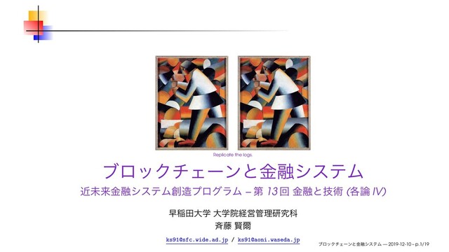 Replicate the logs. ϒϩοΫνΣʔϯͱۚ༥γεςϜ ۙະདྷۚ༥γεςϜϓϩάϥϜ – ୈ 13 ճ ۚ༥ͱٕज़