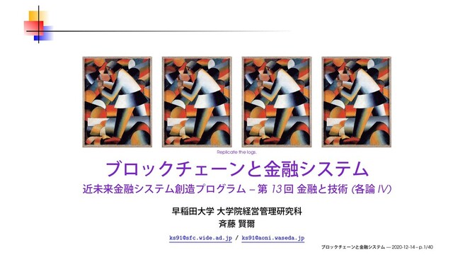2021年12月14日(火)、東京大学およびオンラインにて開催された 近未来金融システム創造プログラム – 第13回 金融と技術 (各論IV) にて使用したスライドです。