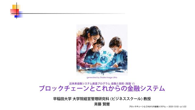 2025年12月2日(火)、東京大学で開催された近未来金融システム創造プログラム「金融と技術 各論V」で使用したスライドです (録画で喋りました)。