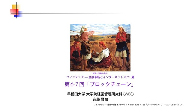 2021年6月21日、早稲田大学 大学院経営管理研究科の「フィンテック ─ 金融革新とインターネット (2021夏)」第6-7回にて使用したスライドです。