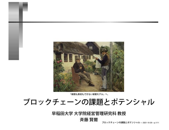 2021年10月29日(金)、オンラインで開催された NIKKEI MESSE PRIME CONFERENCE SERIES「産業実装段階に入ったブロックチェーン」での基調講演で用いたスライドです。