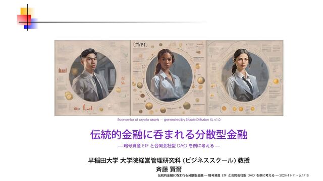 2024年11月11日(月) に開催された SBI 金融経済研究所 FinTech 研究会での講演にて使用したスライドです。