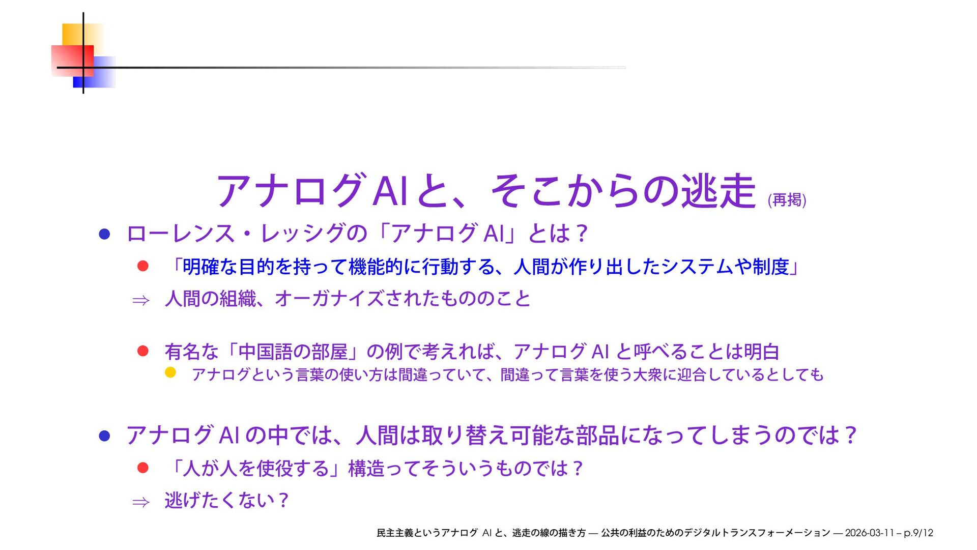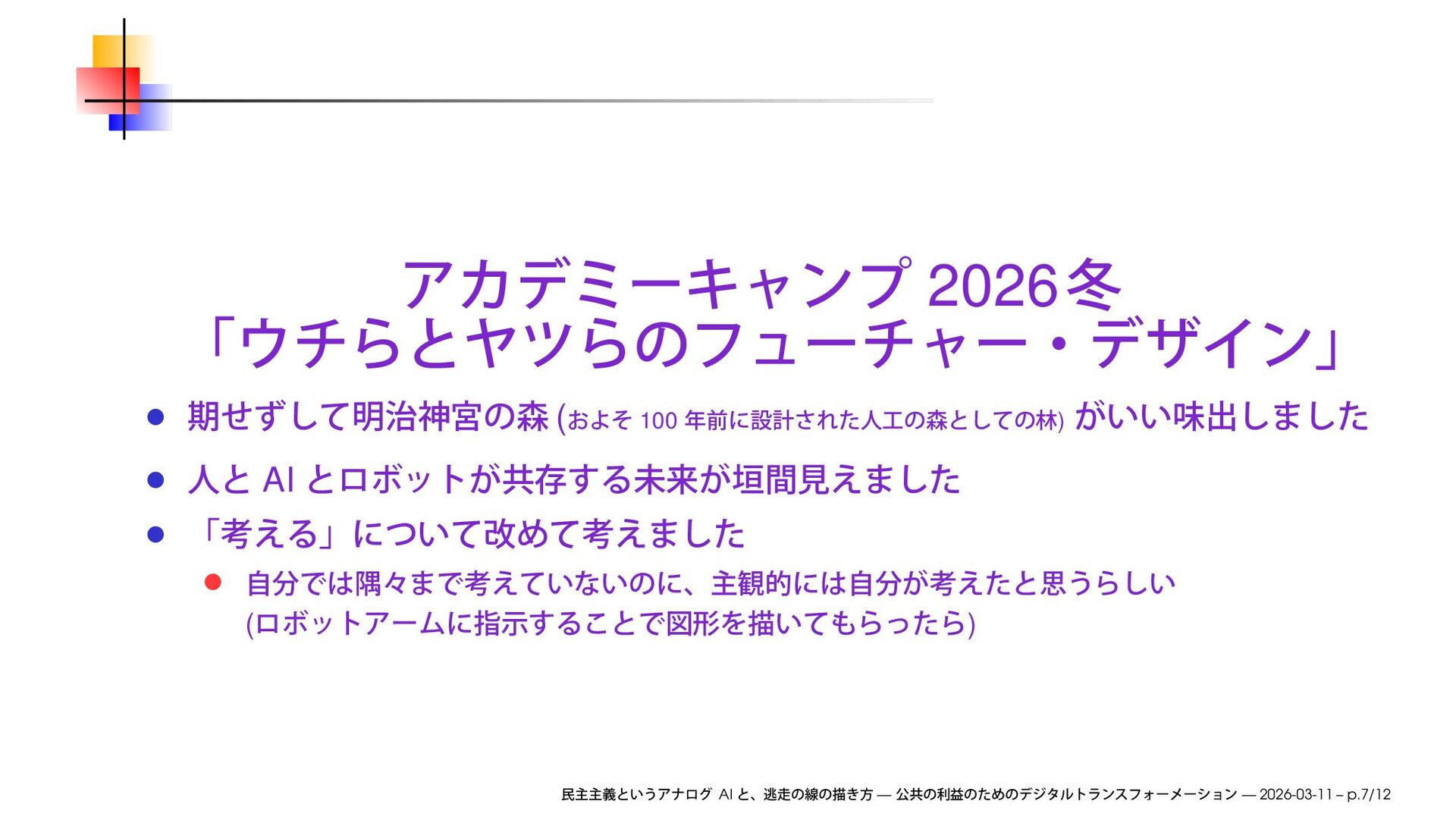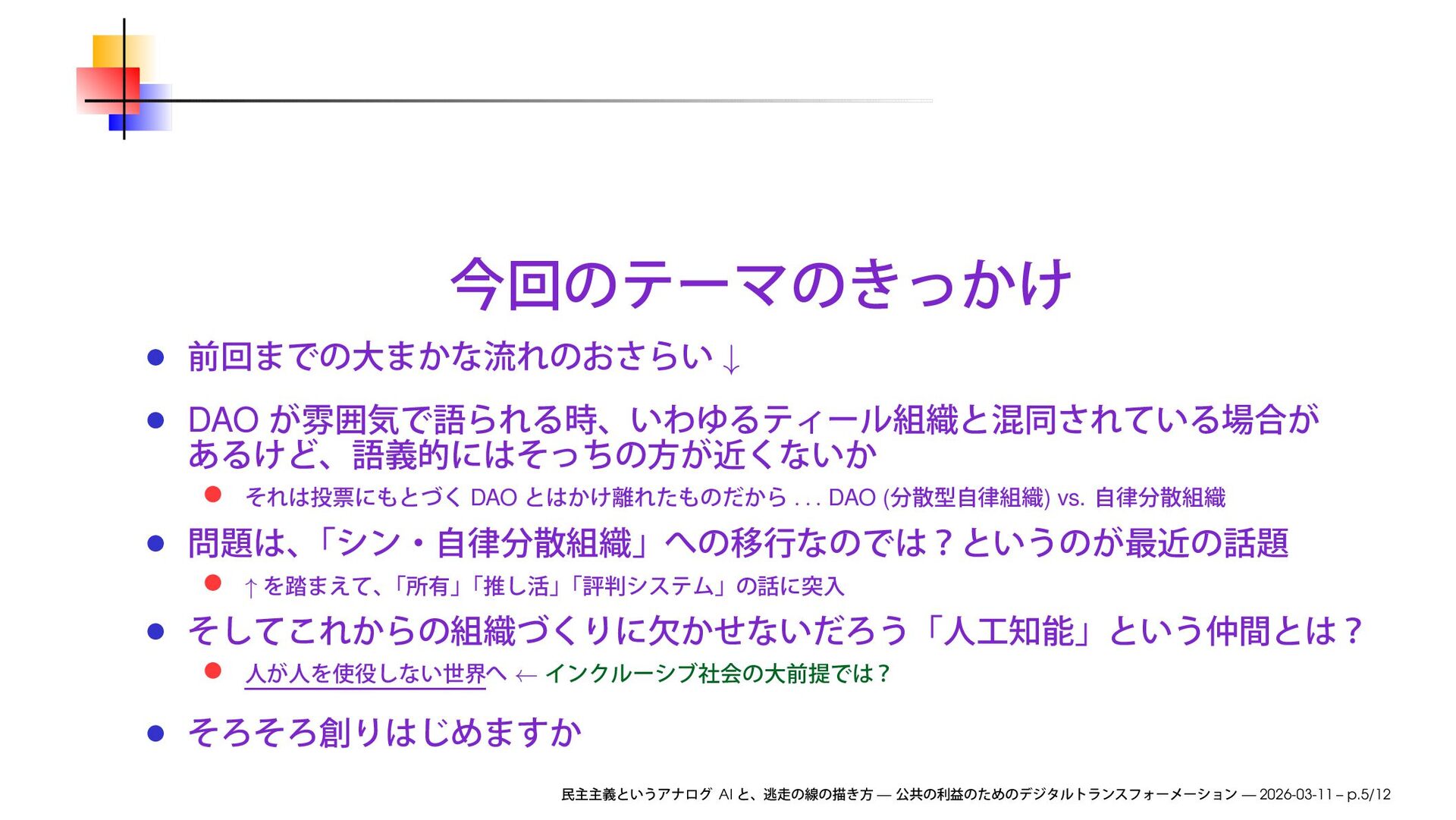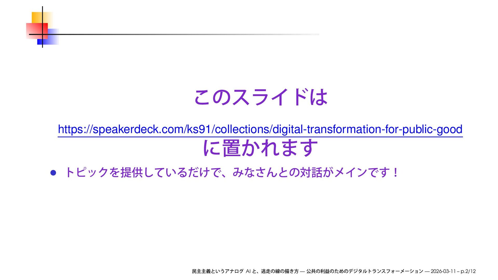 we will discuss how to improve society by transforming businesses through digital communication technologies, and explore ways to make this happen AI — — 2026-03-11 – p.4/12