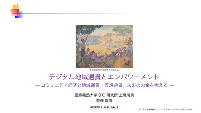 — δϟϯ=Ϧϡ οΫɾϐΧʔυ “The economics of the future are somewhat different. You see, money doesn’t exist in the 24th century. . . . The acquisition of wealth is no longer the driving force in our lives. We work to better ourselves and the rest of humanity.” — Capt. Jean-Luc Picard σδλϧҬ௨՟ͱΤϯύϫʔϝϯτ — 2019-06-14 – p.34/44