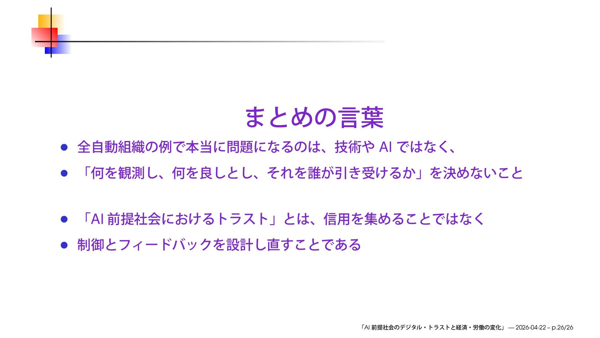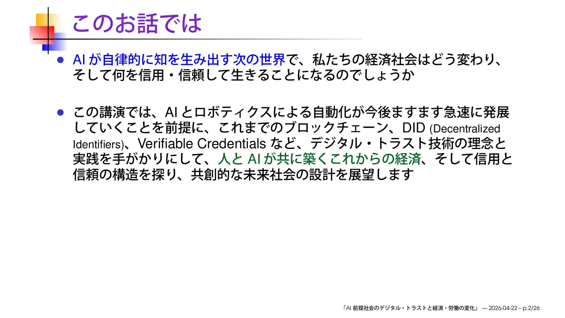 AI 前提社会のデジタル・トラストと経済・労働の変化 / Digital Trust in a...