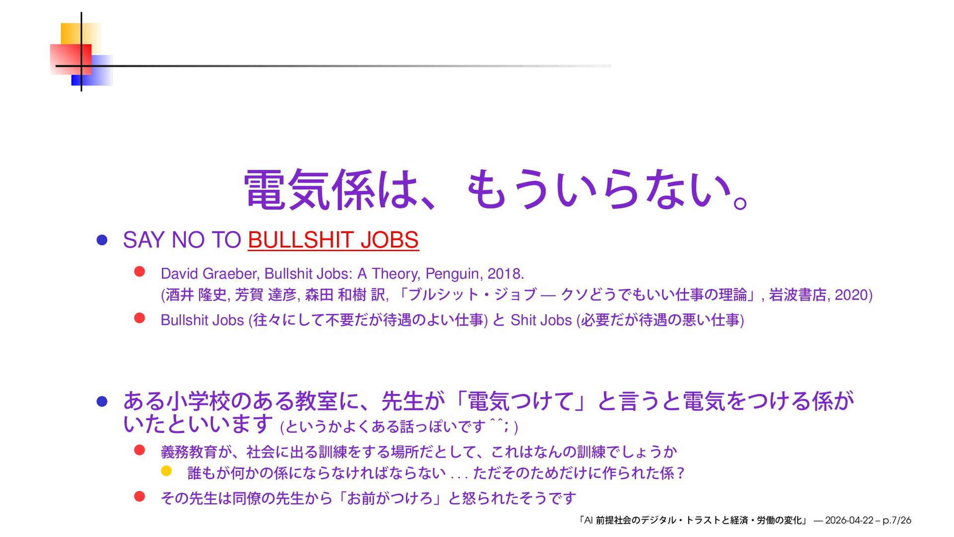 Theory, Penguin, 2018. ( , , , — , , 2020) Bullshit Jobs ( ) Shit Jobs ( ) ( ) . . . AI — 2026-04-22 – p.7/26