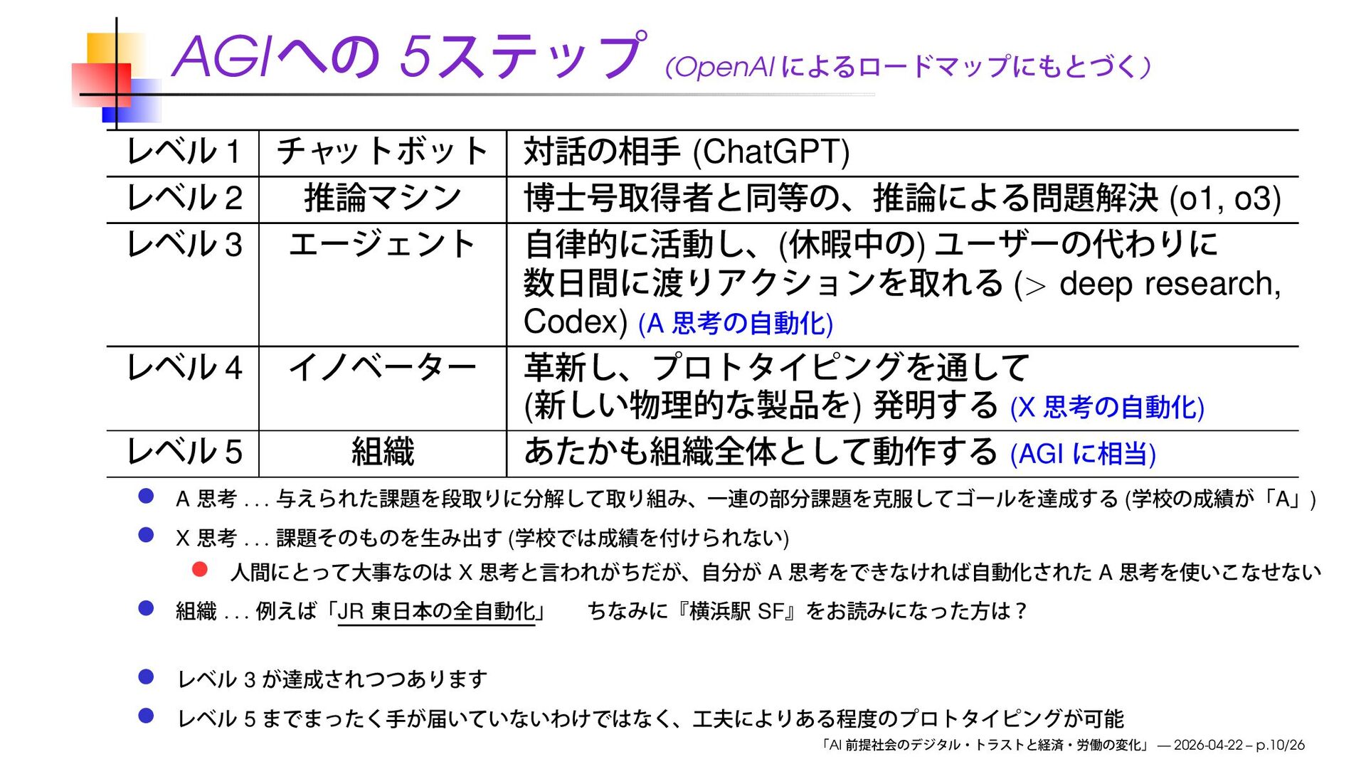 ( ) (> deep research, Codex) (A ) 4 ( ) (X ) 5 (AGI ) A . . . ( A ) X . . . ( ) X A A . . . JR SF 3 5 AI — 2026-04-22 – p.10/26