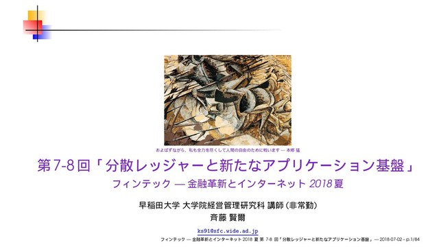 2018年7月2日(月)、早稲田大学 大学院経営管理研究科の授業「フィンテック ─ 金融革新とインターネット」第7-8回で使用したスライドです。