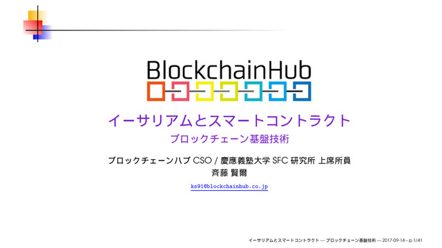 2017年12月13日(水)、ブロックチェーンアカデミー「イーサリアムとスマートコントラクト」にて使用したスライドです