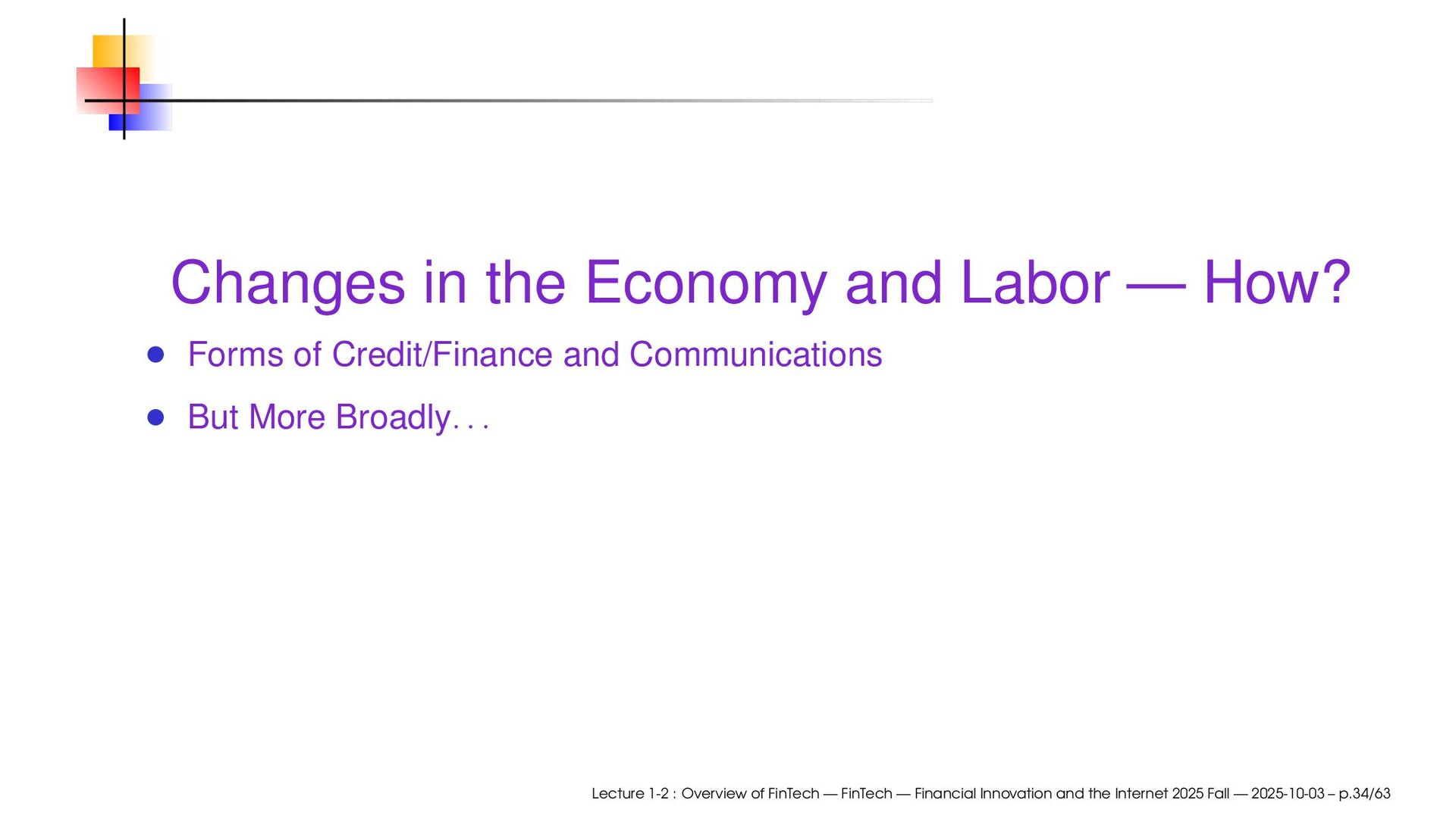 Credit/Finance and Communications But More Broadly . . . Lecture 1-2 : Overview of FinTech — FinTech — Financial Innovation and the Internet 2025 Fall — 2025-10-03 – p.34/63