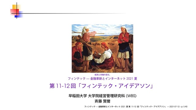 2021年7月12日、早稲田大学 大学院経営管理研究科の「フィンテック ─ 金融革新とインターネット (2021夏)」第12-13回にて使用したスライドです。